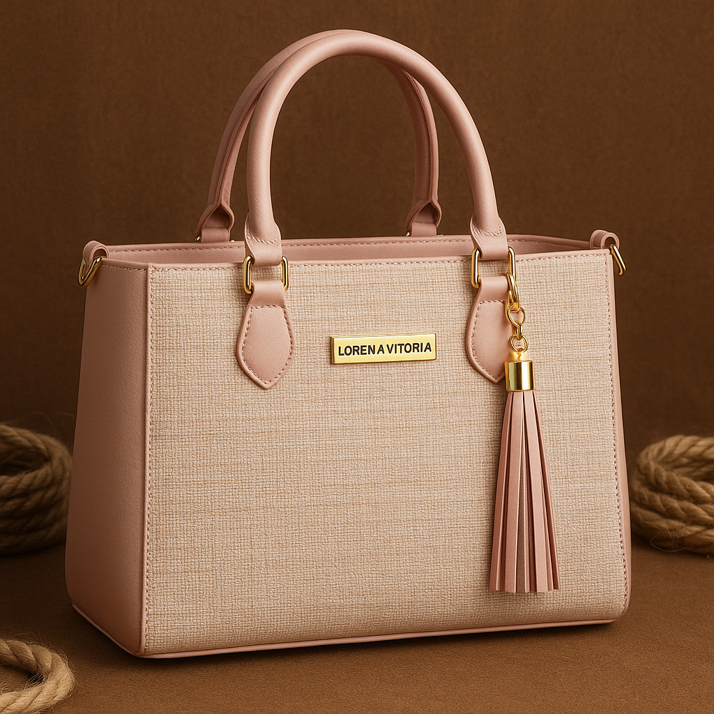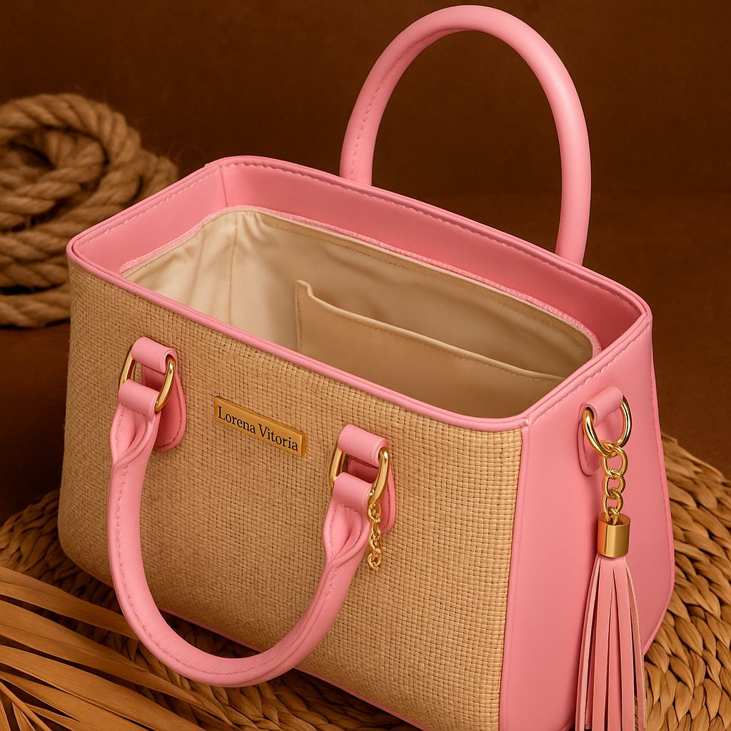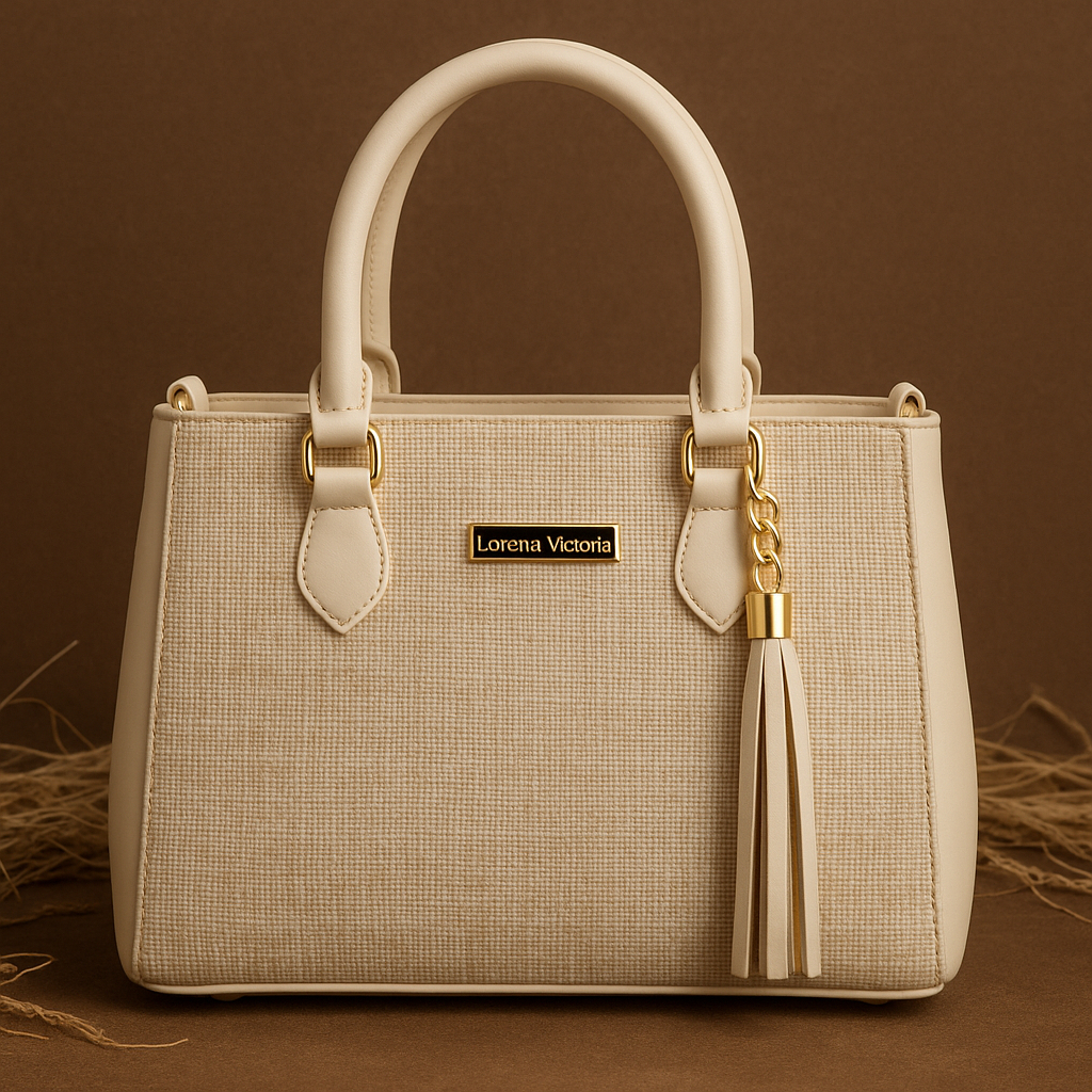 Bolsa Feminina Lorena Vitória Palha Chic Alça Dupla (Mão + Transversal)