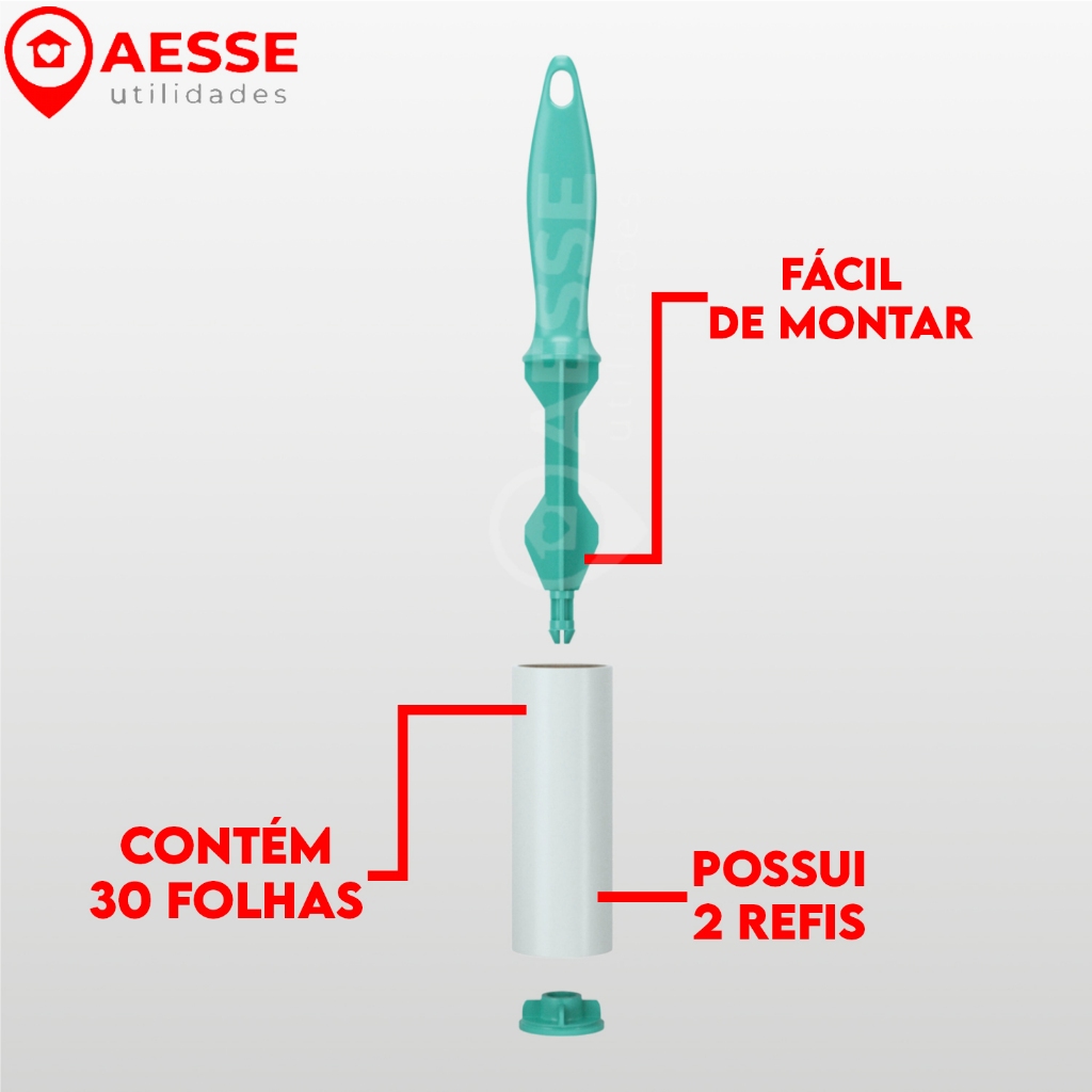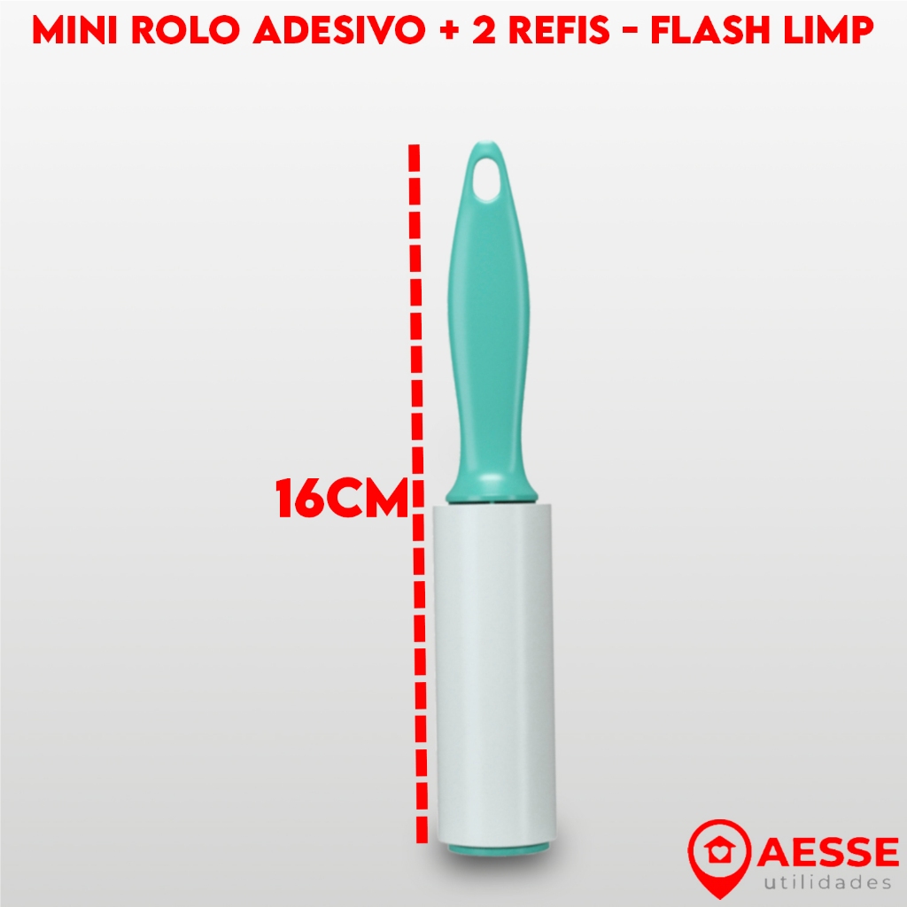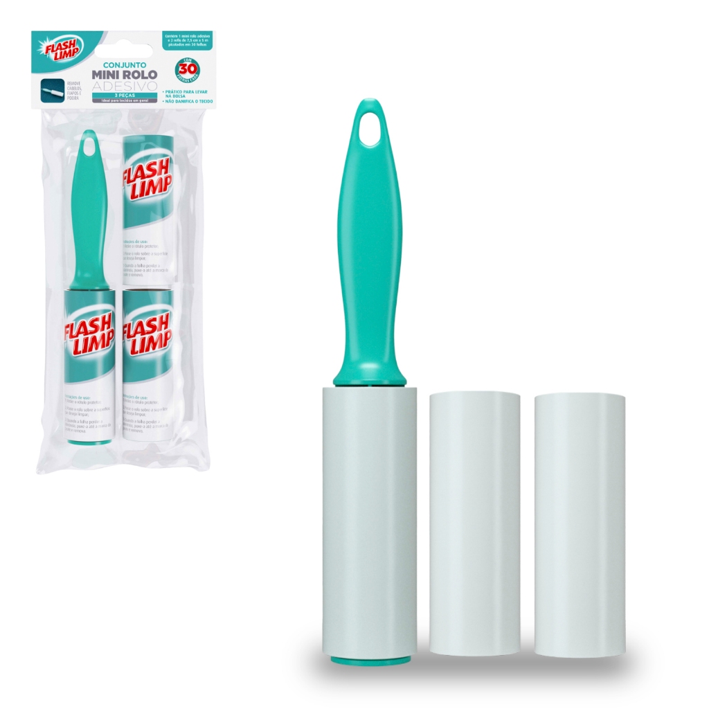 Mini Rolo Adesivo + 2 Refis Tira Pelos 30 folhas Flash Limp