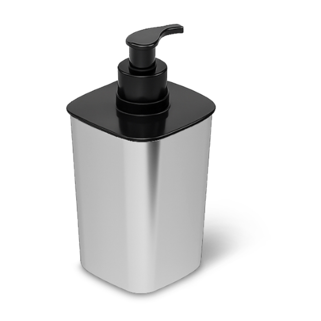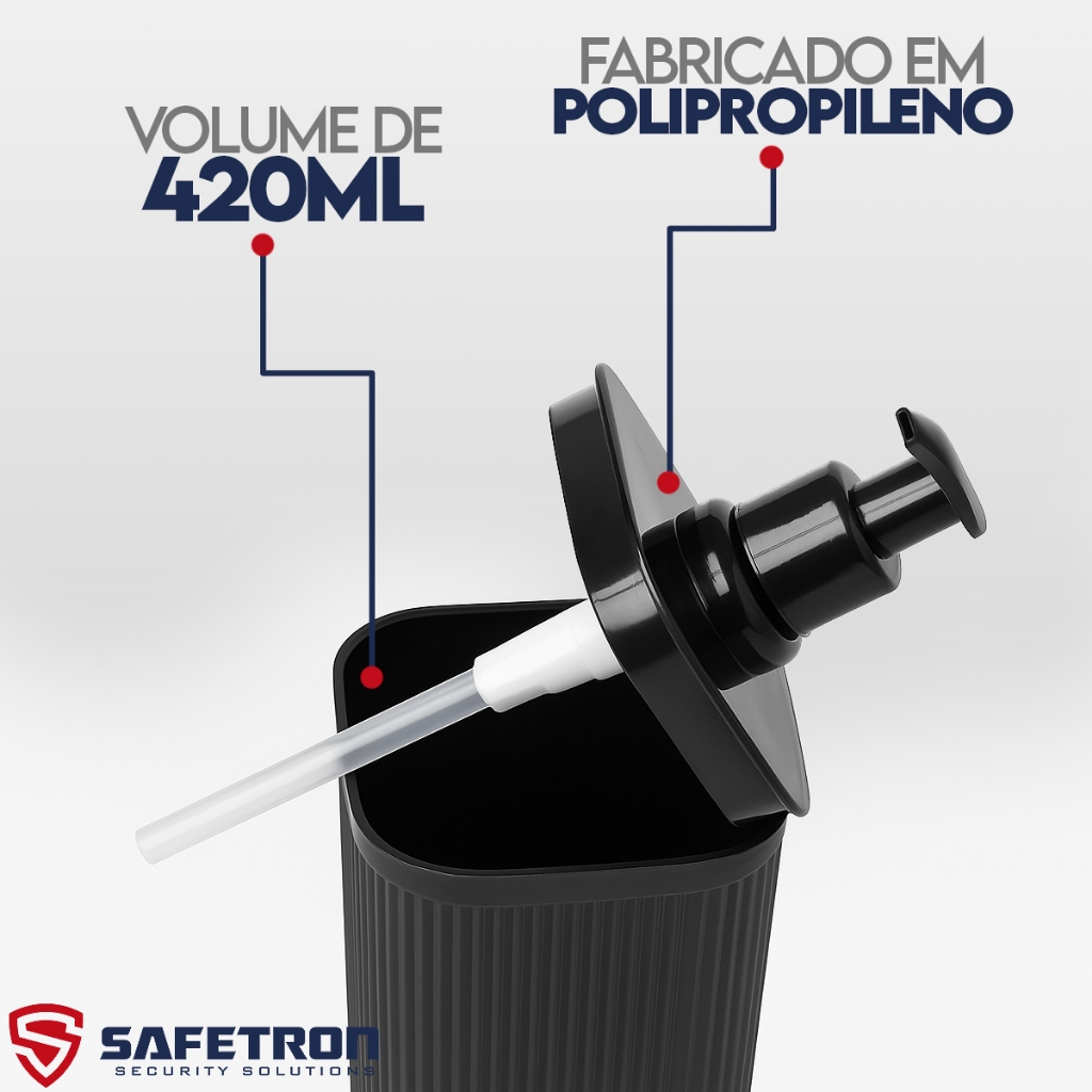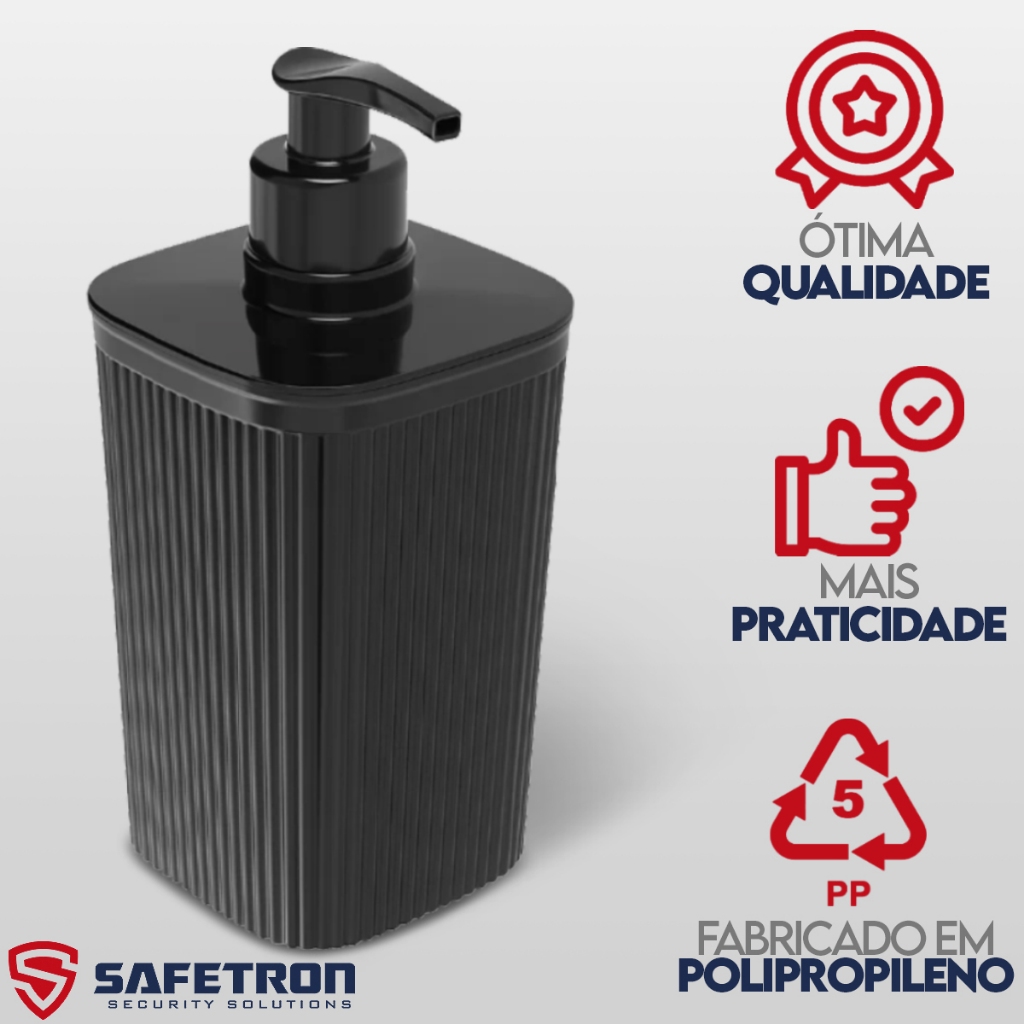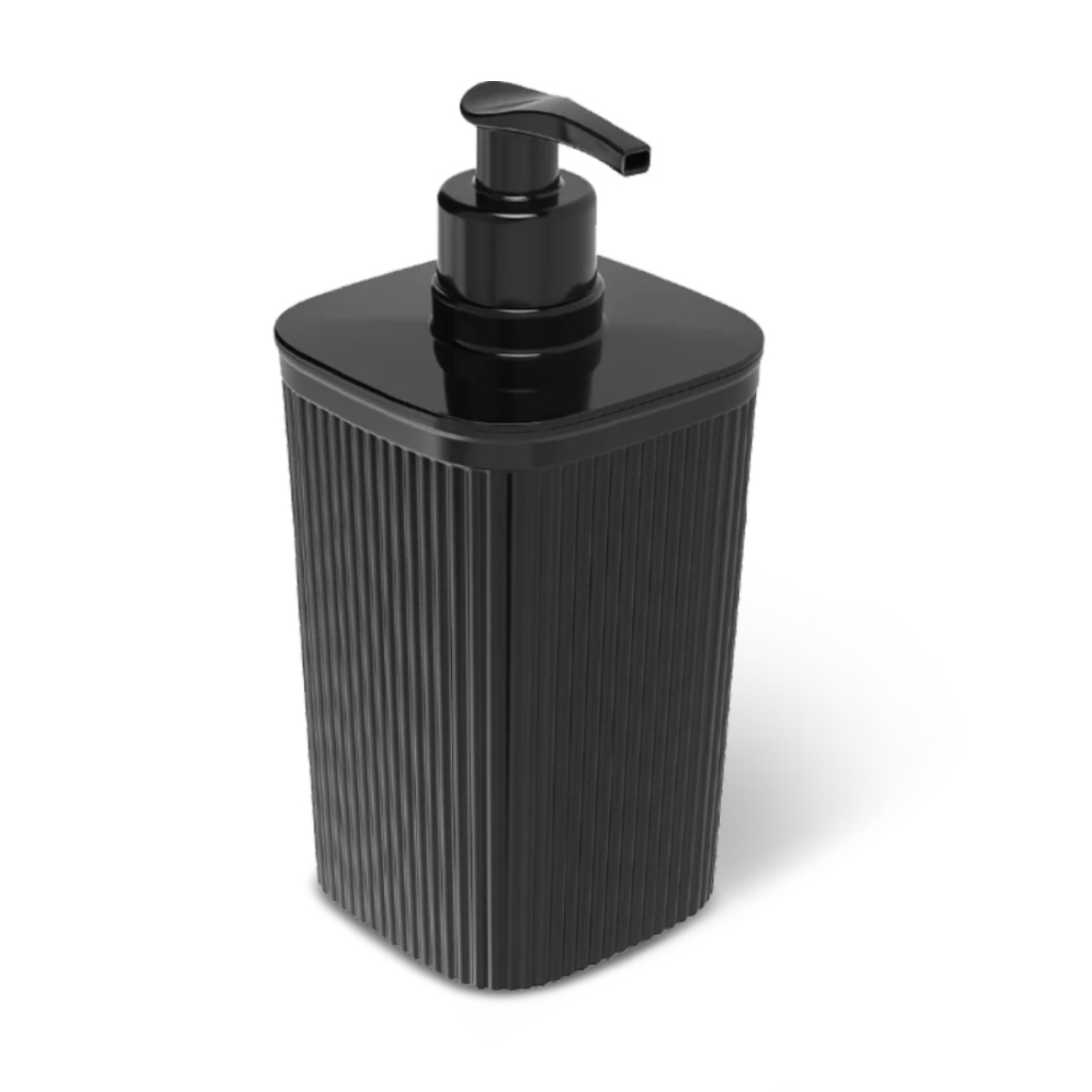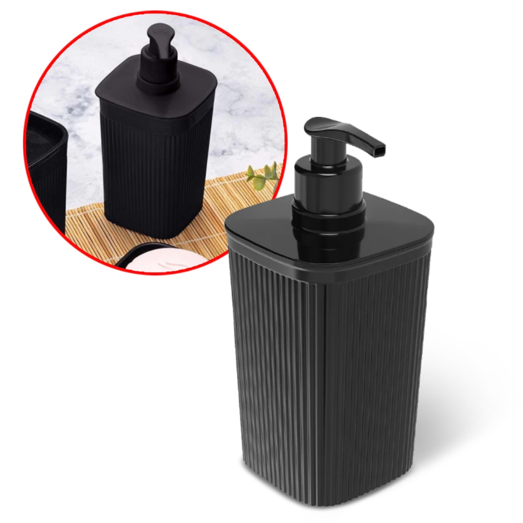 Porta Sabonete Líquido 420 ml Frisos Preto Banheiro Pia Lavabo Minimalista Plasútil