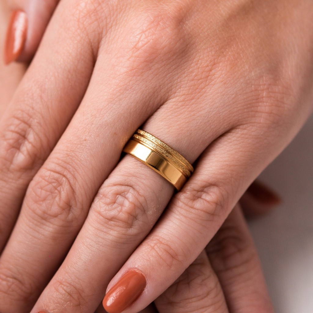 Par de Aliança Banhada a Ouro 24K Diamantada 2 Frisos 8mm Noivado Casamento + Solitário + Caixinha - 3 Anos Garantia