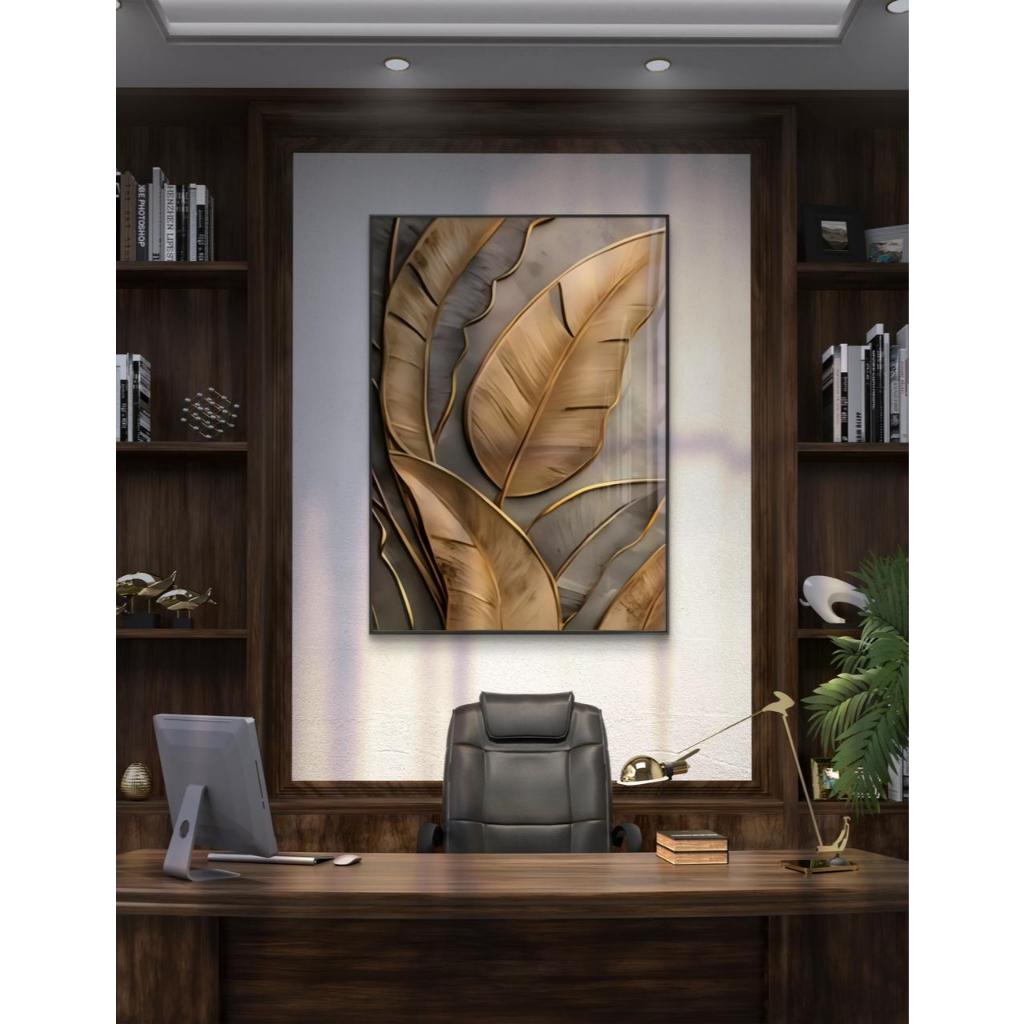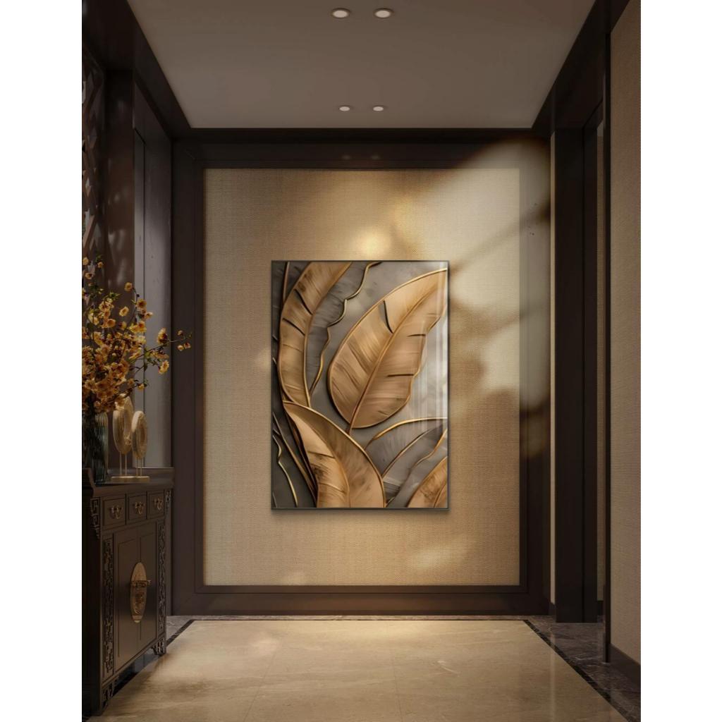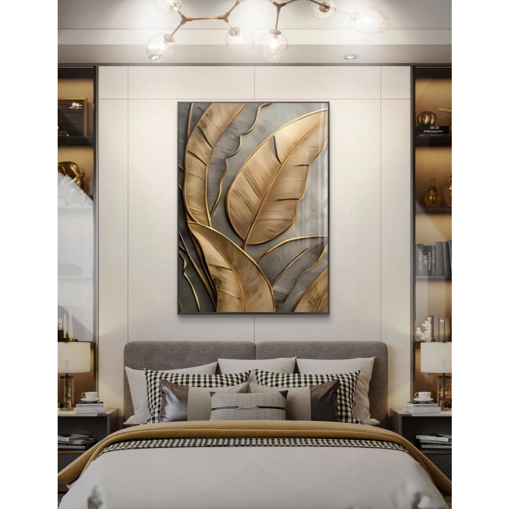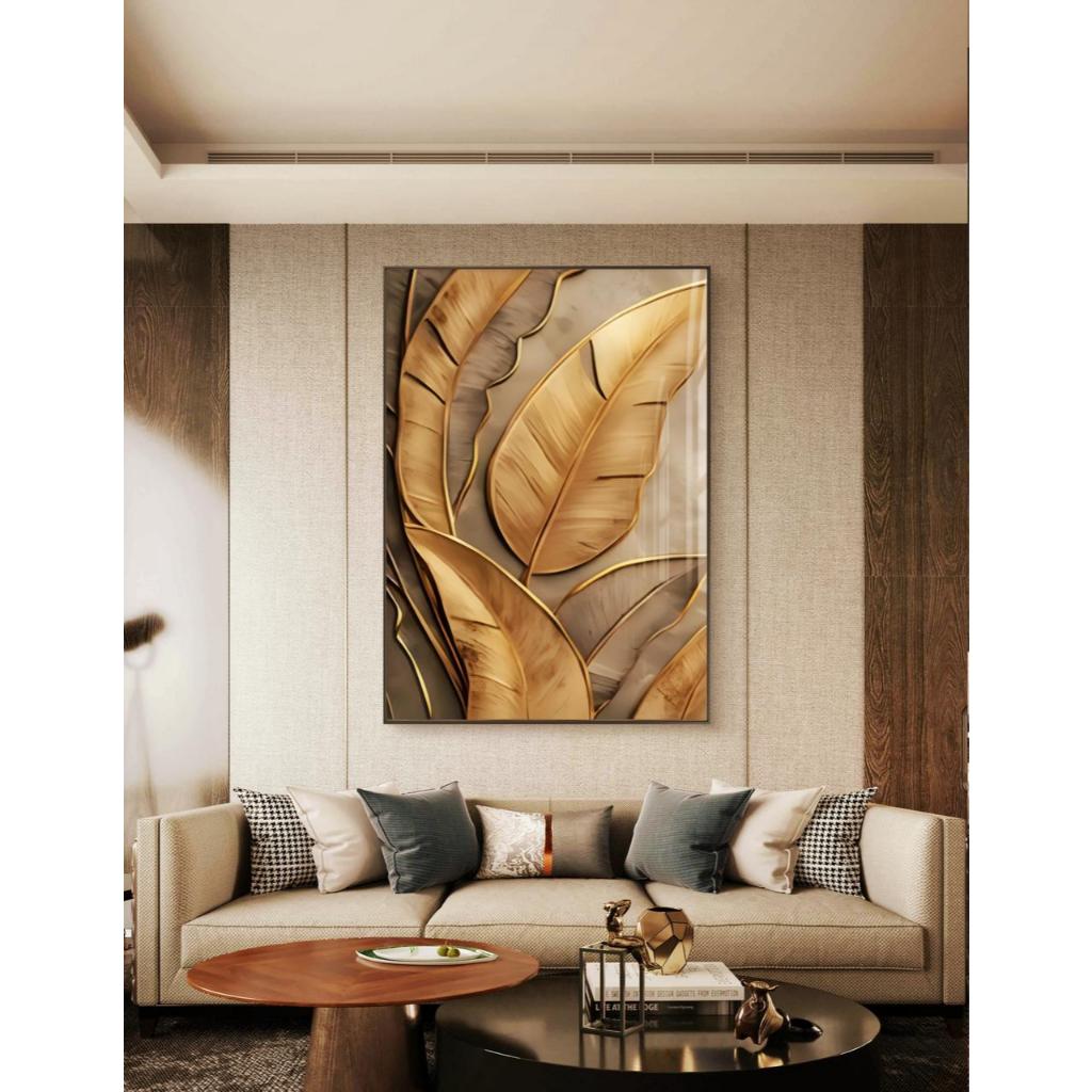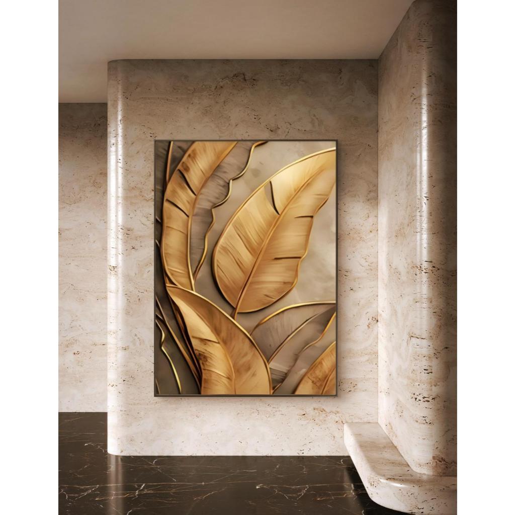 Quadro Decorativo Folhas Douradas Luxo 110x80cm Para Casa Quarto Sala Moderno Grande e Sofisticado