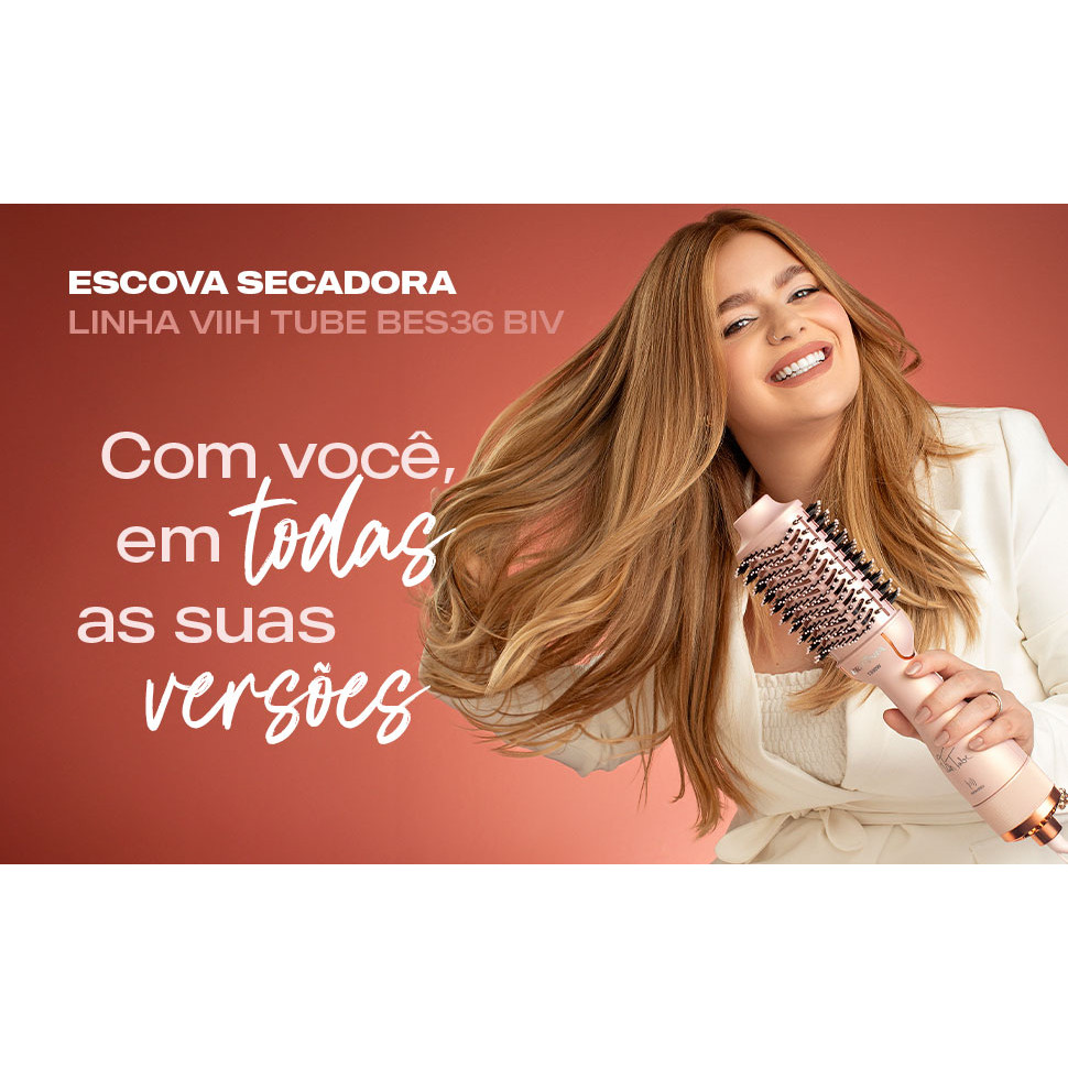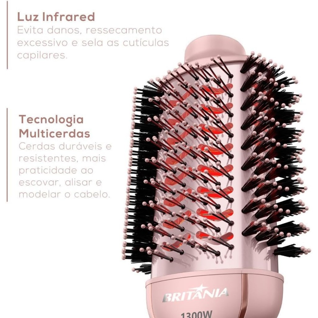 Escova Secadora Britânia Bivolt 1300W 4 em 1 Infrared BES36 Rosa