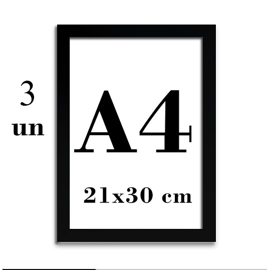 Kit 03 Molduras A4 21x30 cm P/ Quadros Certificados Diplomas Imagens COM ACETATO