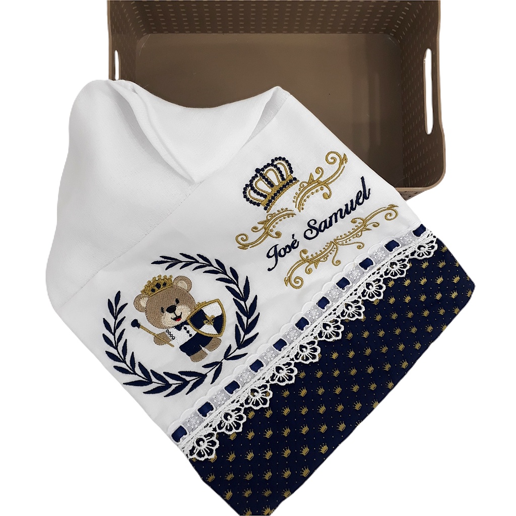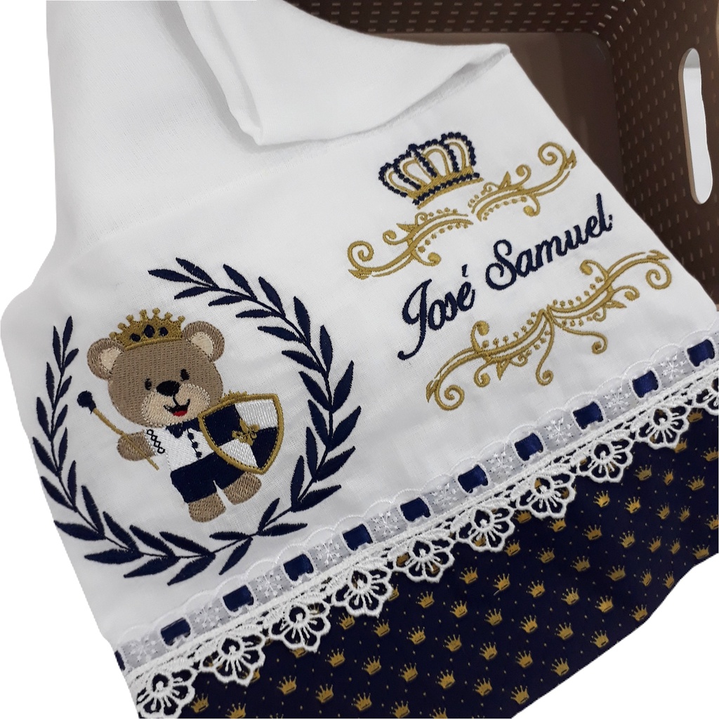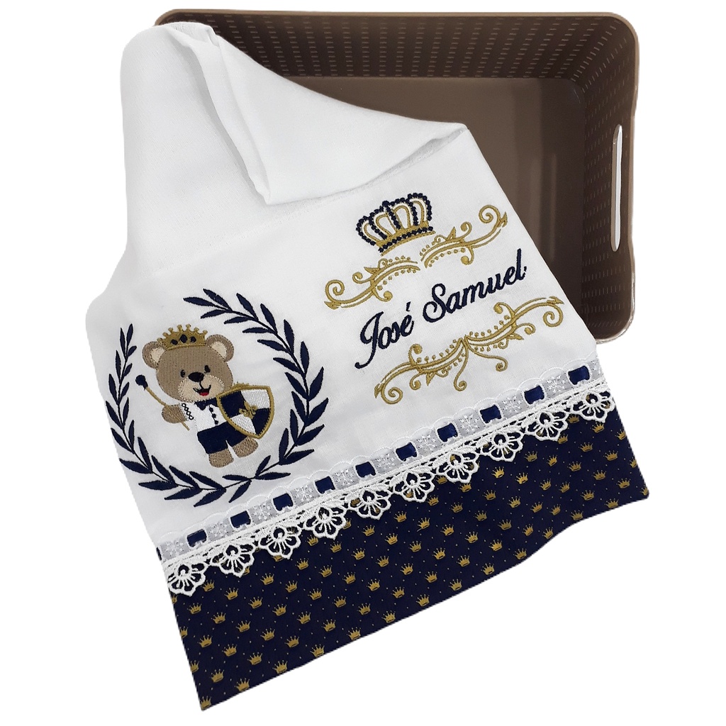 Fralda De Pano Tecido Ombro Passeio Bordado Urso Rei Personalizado Com O Nome Do Bebê