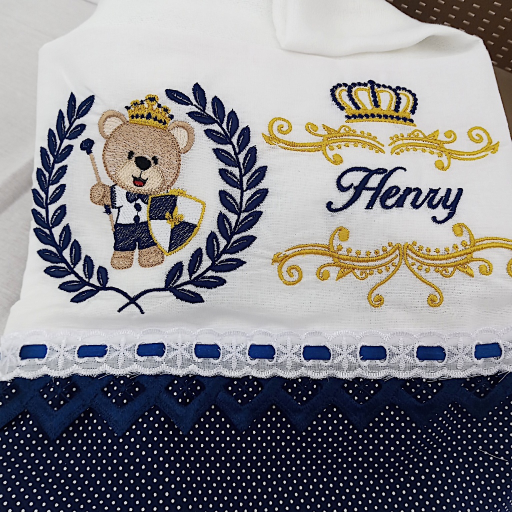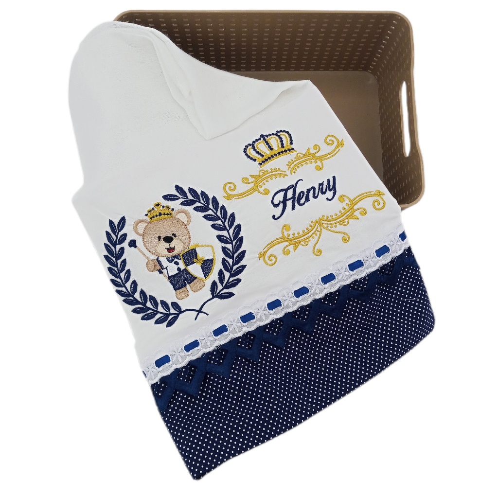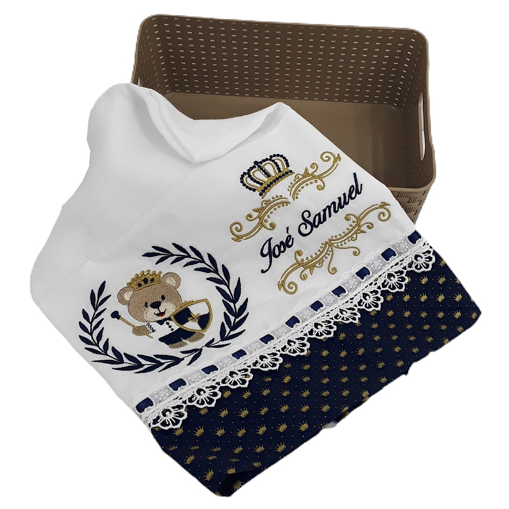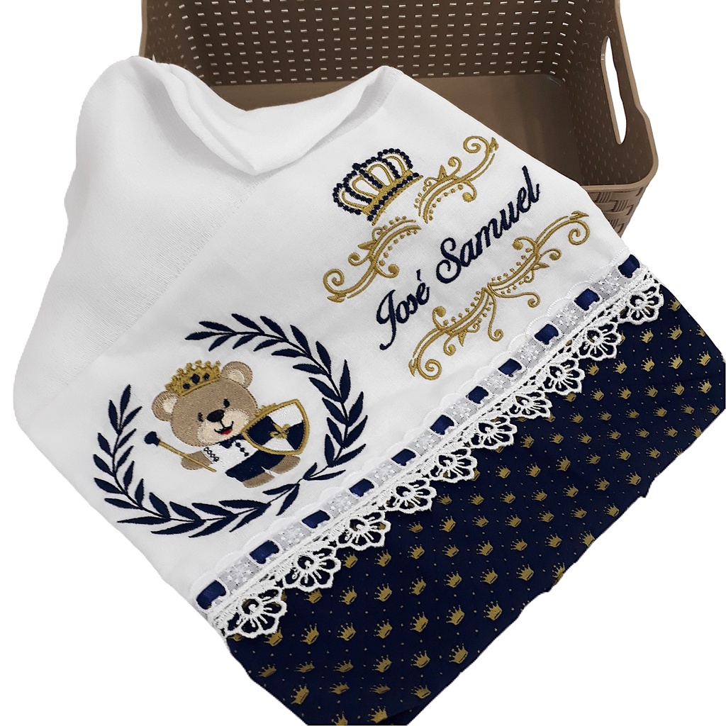 Fralda De Pano Tecido Ombro Passeio Bordado Urso Rei Personalizado Com O Nome Do Bebê