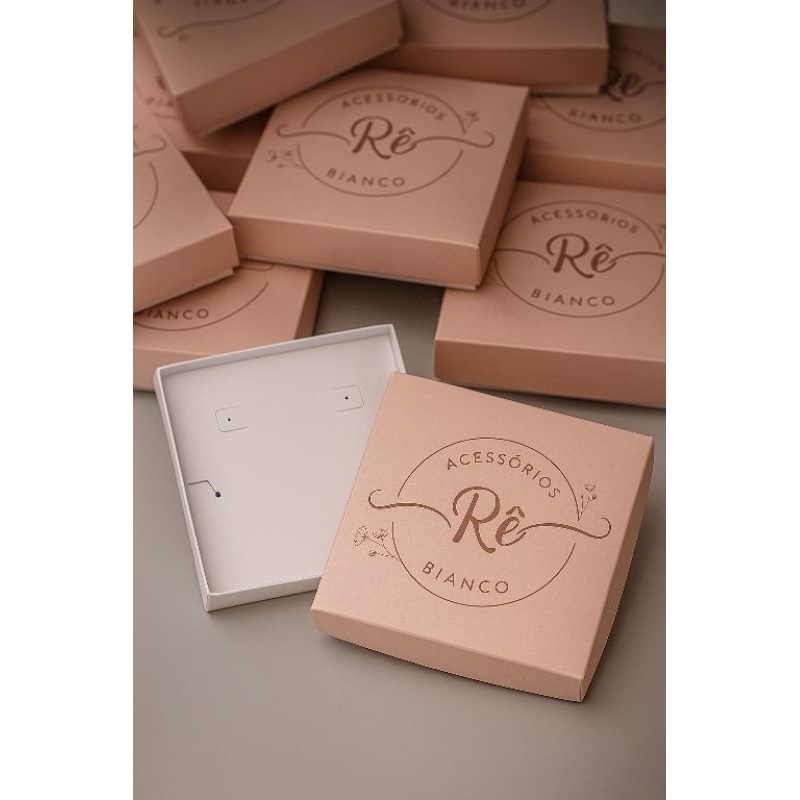 Caixinhas personalizadas com logo para semijoias bijuteria colar e brinco cores claras base e berço branco