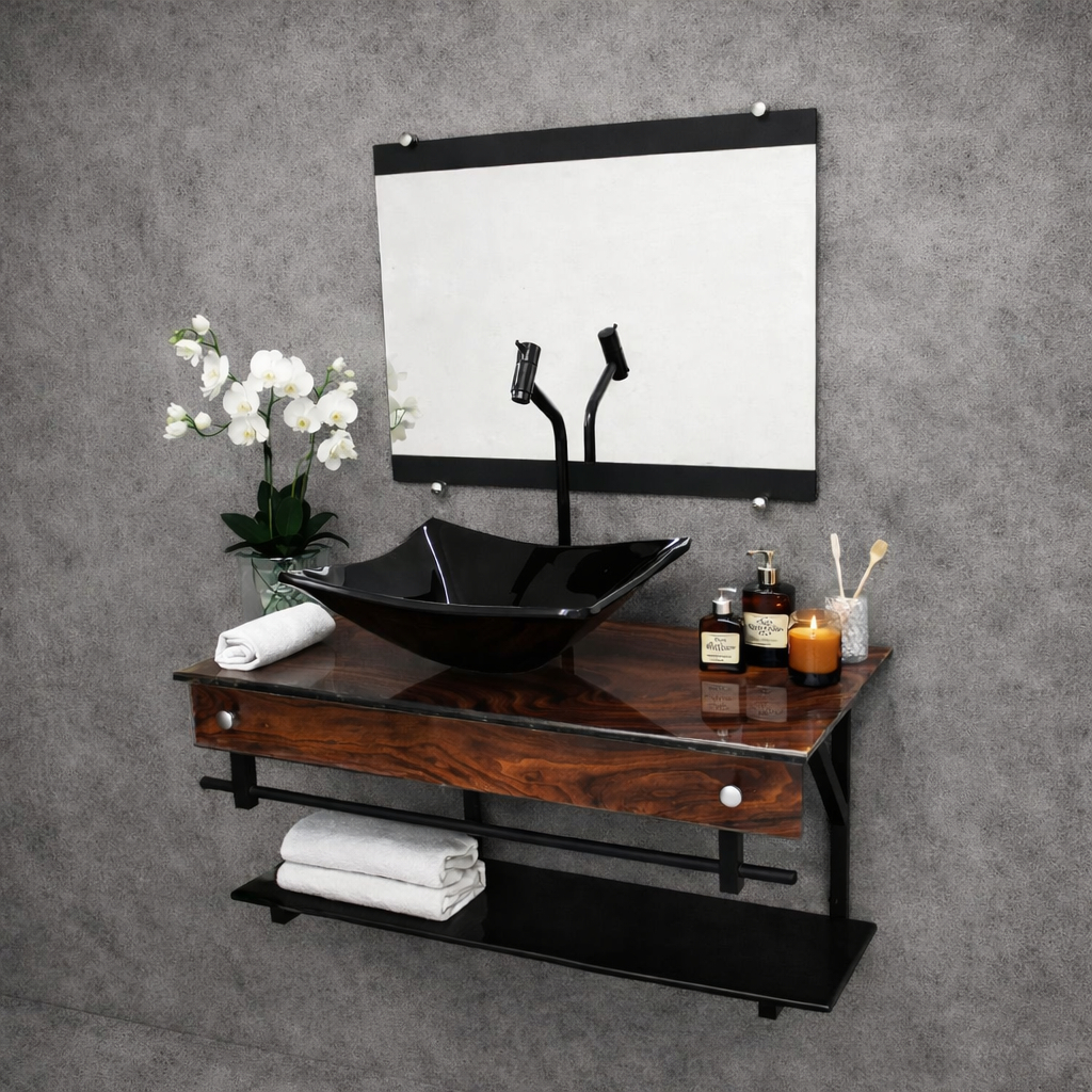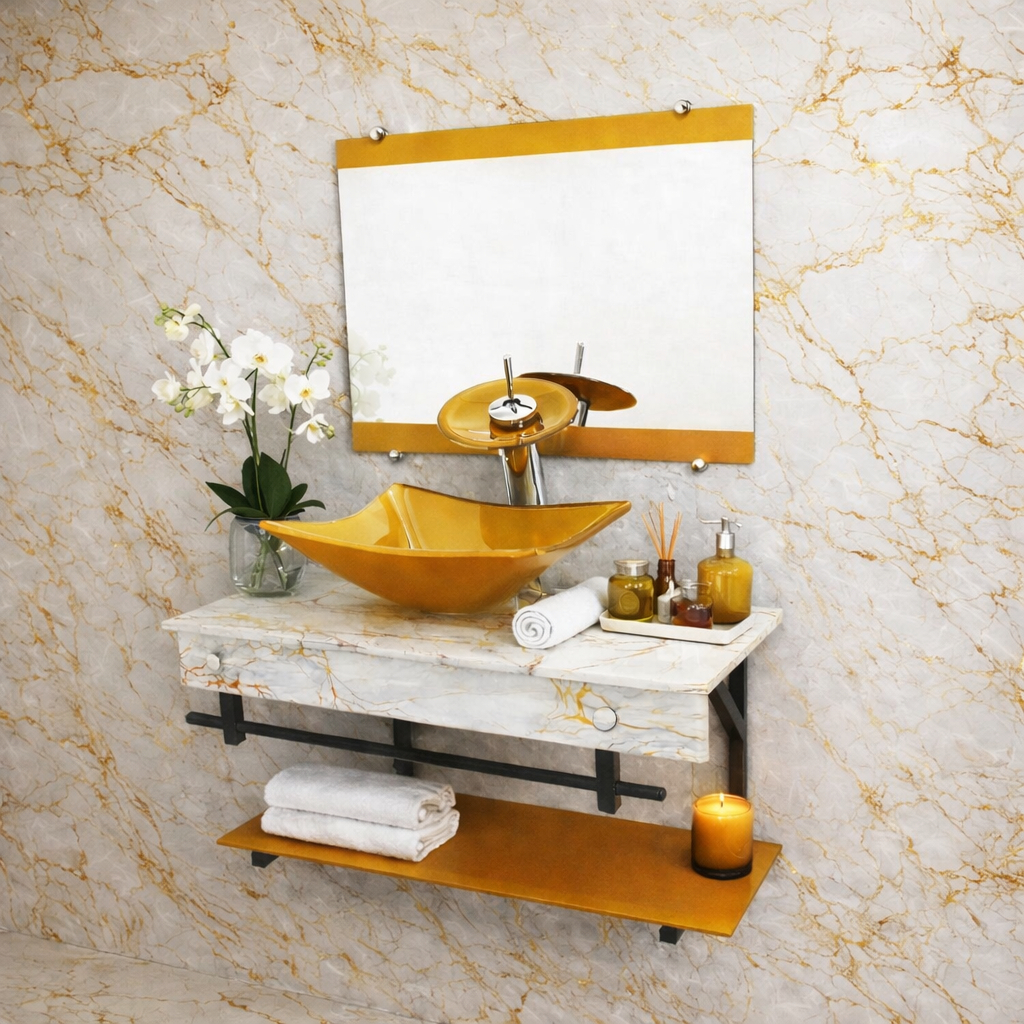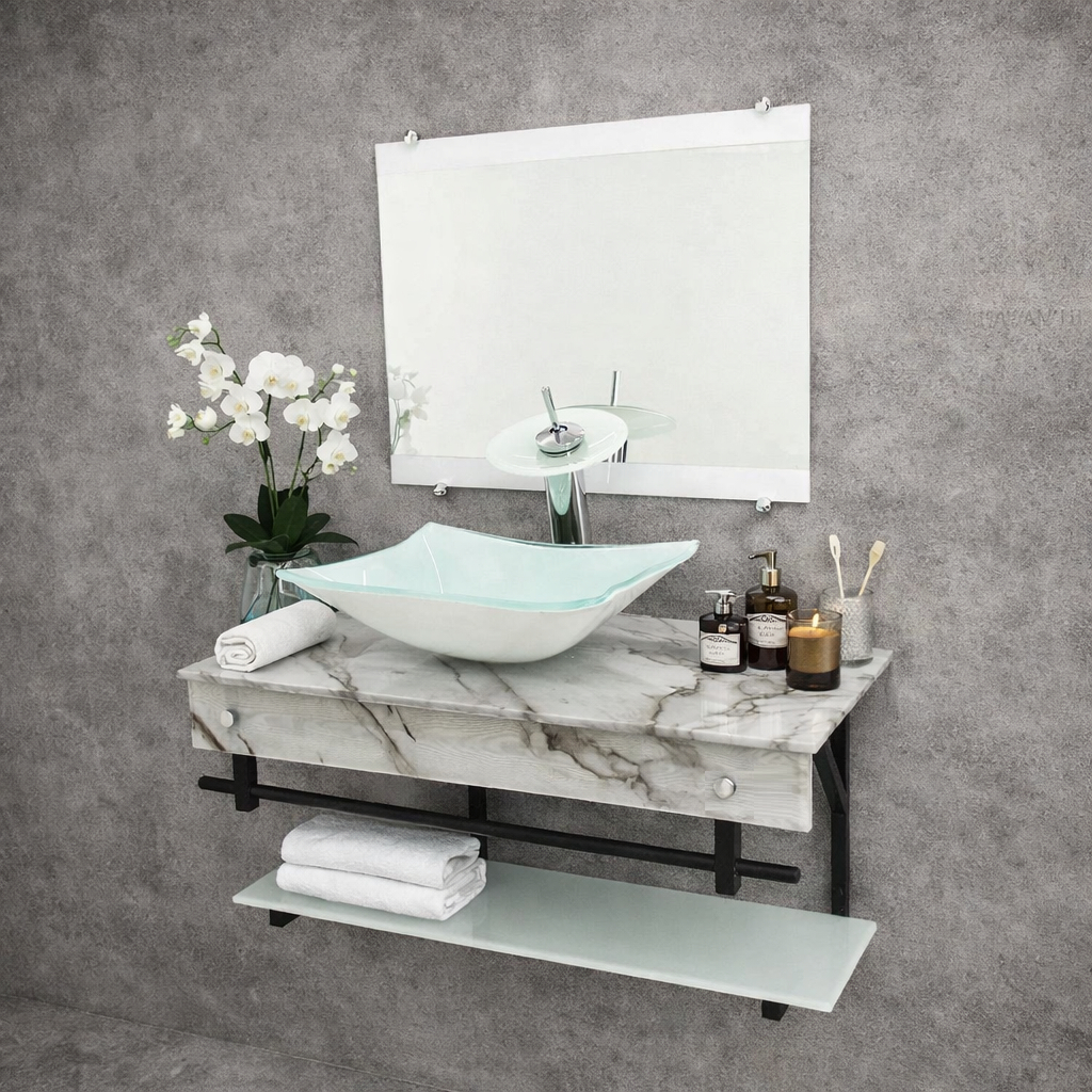 Gabinete De Vidro 50cm Apx Com Cuba Quadrada Cores Variadas