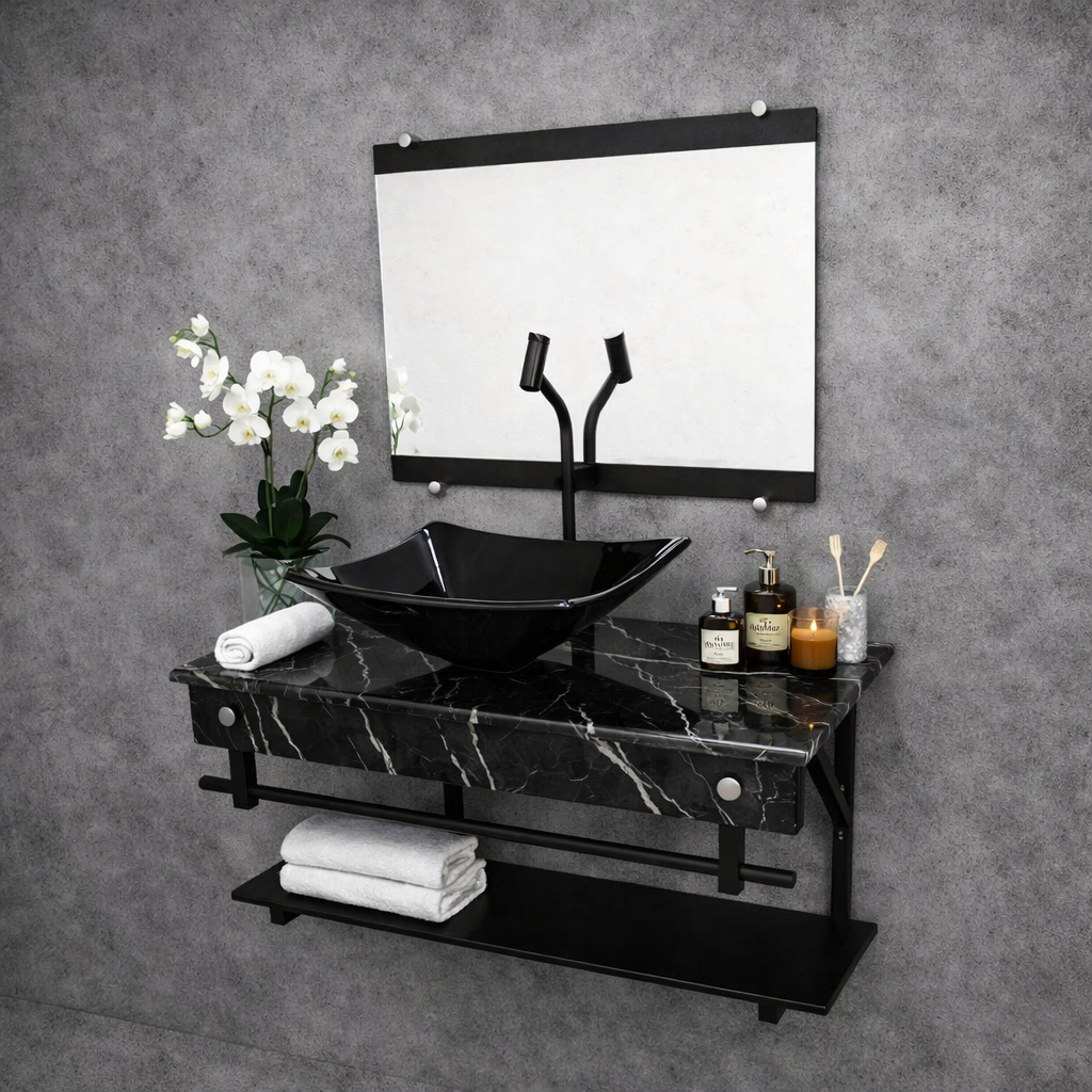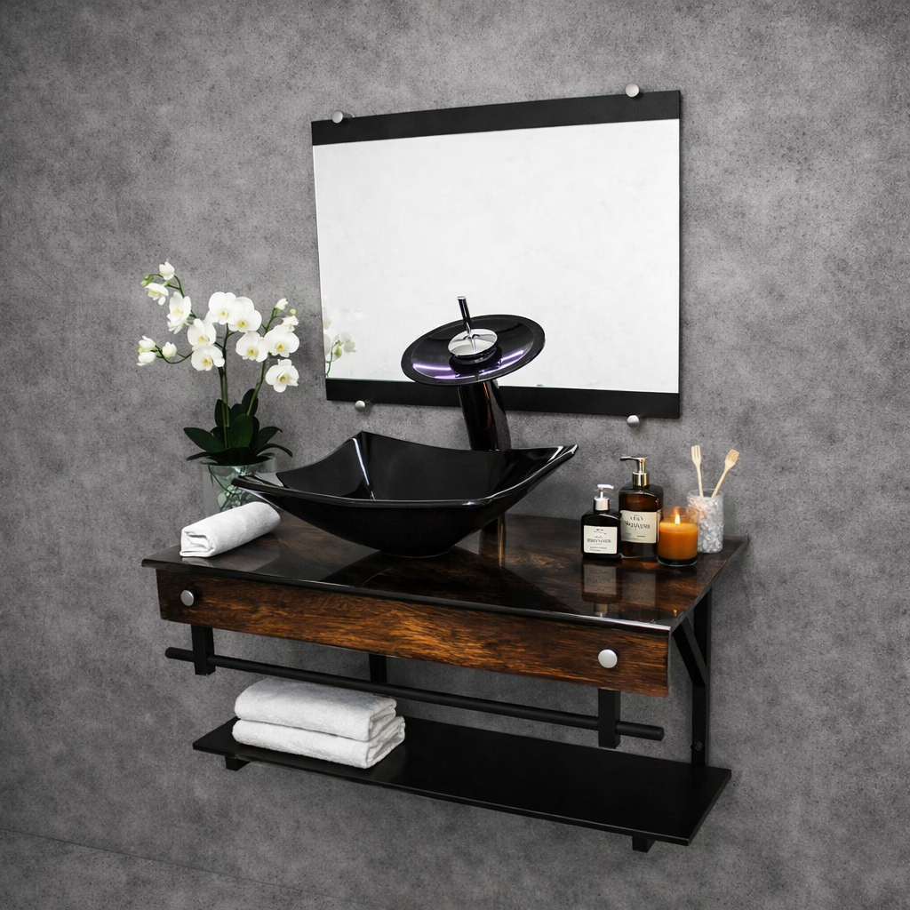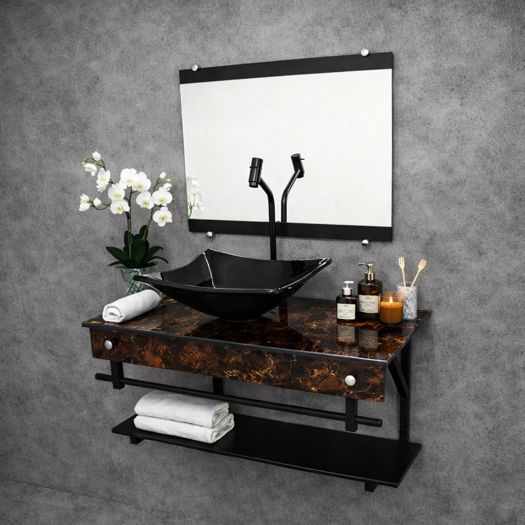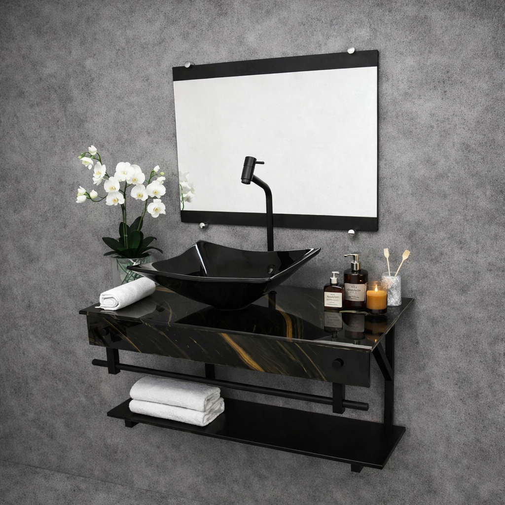 Gabinete De Vidro 50cm Apx Com Cuba Quadrada Cores Variadas
