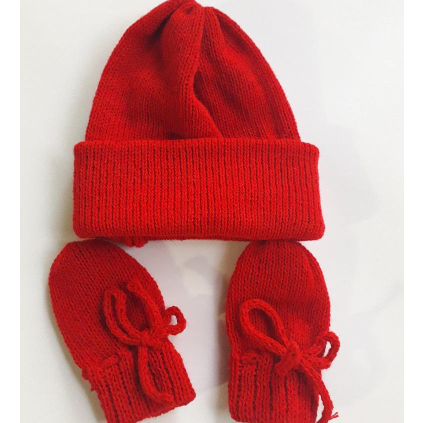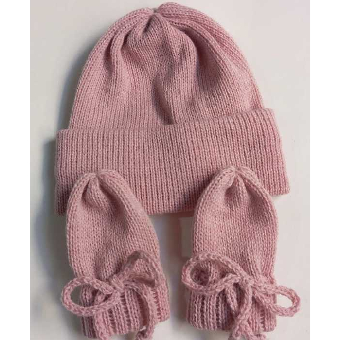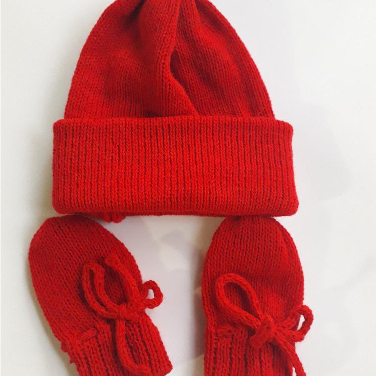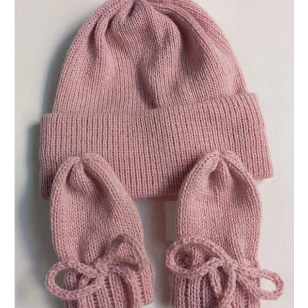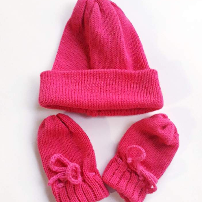 Kit recém-nascido / Touca e Luvas em Tricô Saída de Maternidades Enxoval para Bebê