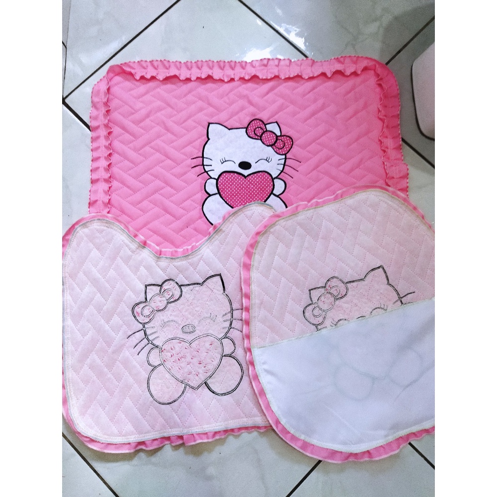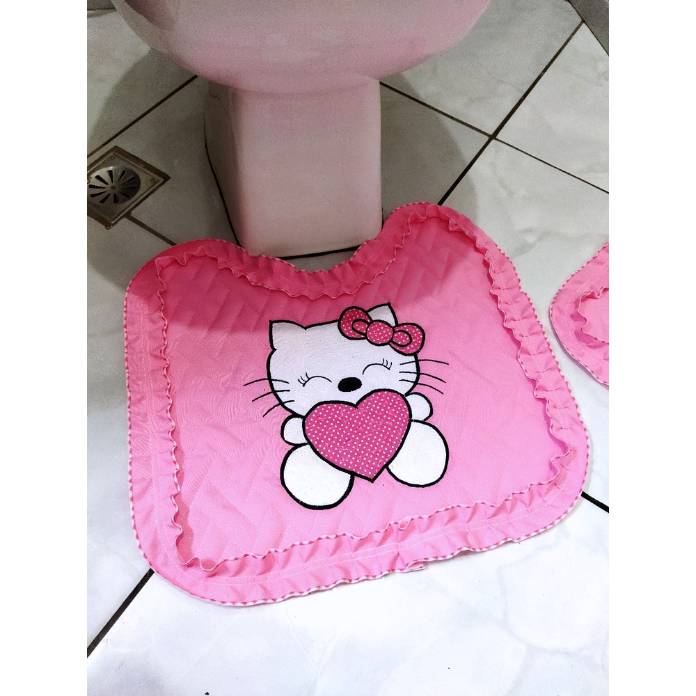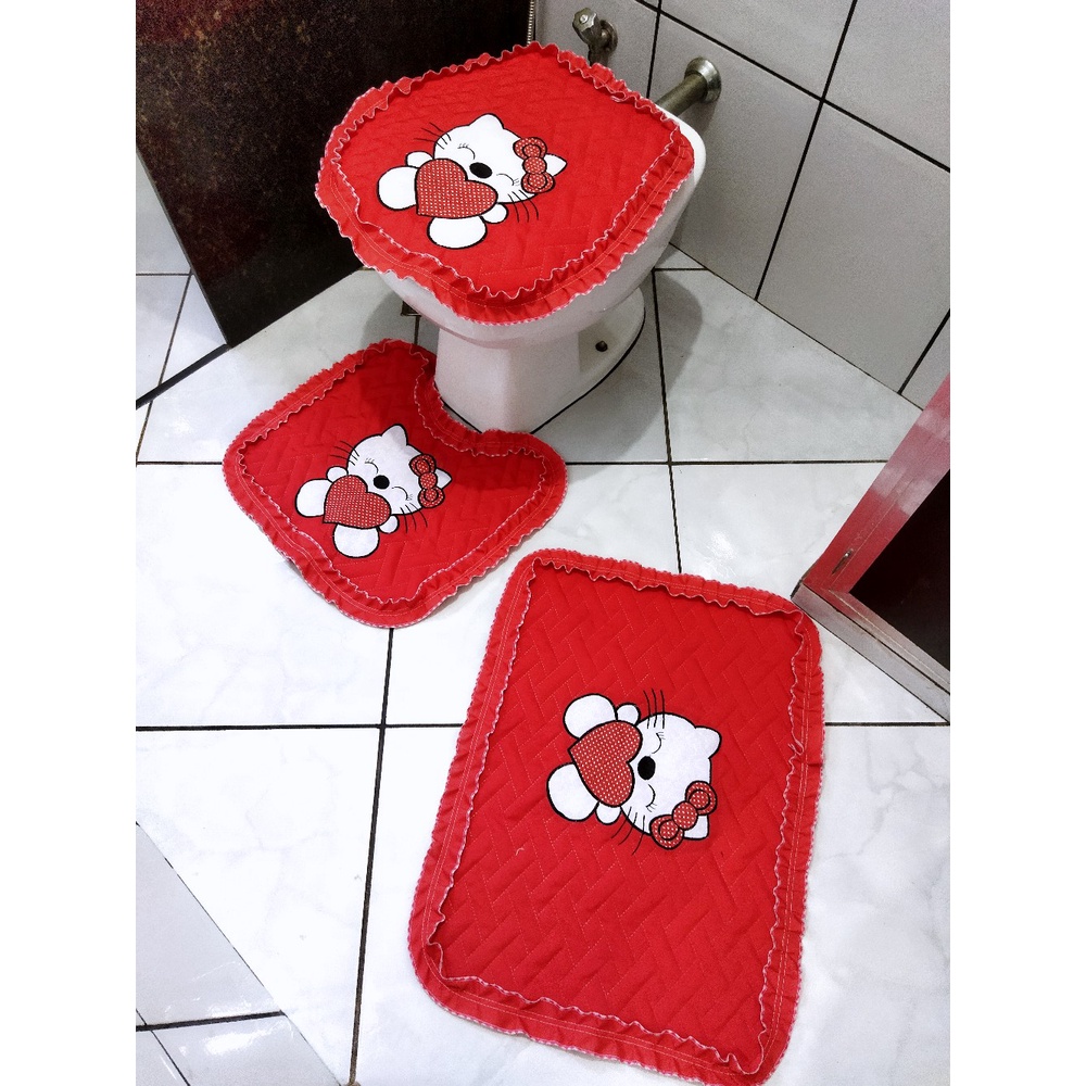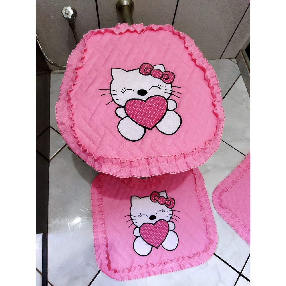 Jogo de banheiro Hello Kitty fofo 3 peças tecido metalassê com coração de bolinha laço fofo