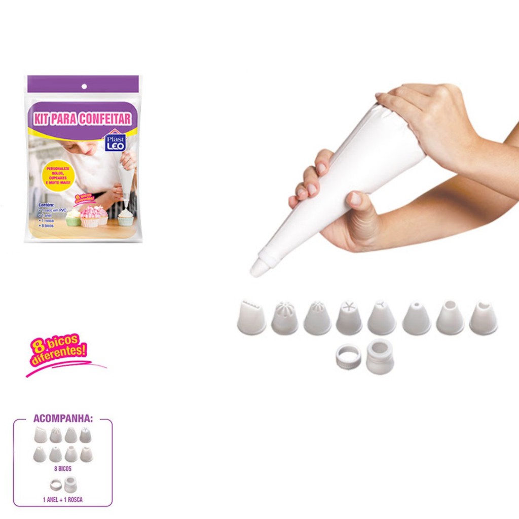 Saco De Confeitar com Rosca + 8 Bicos de Plástico para Decoração Para Bolos