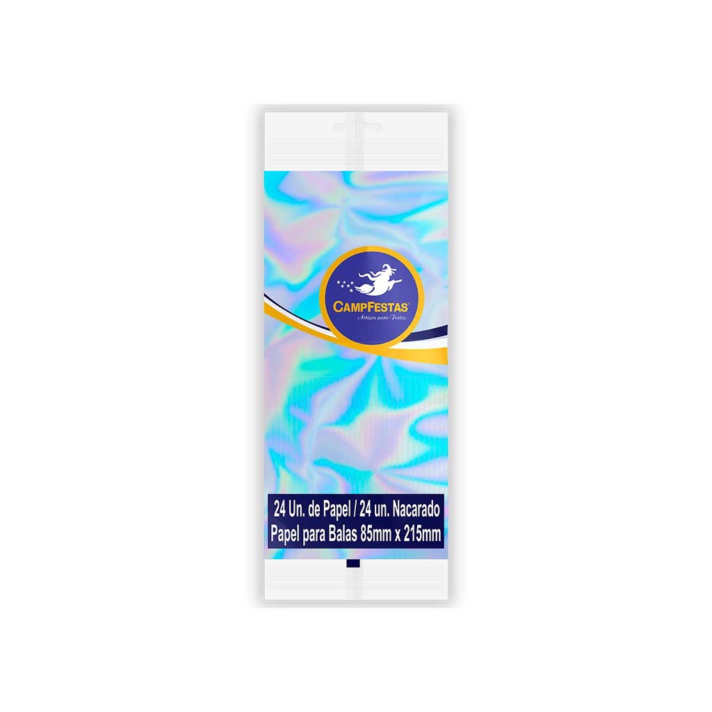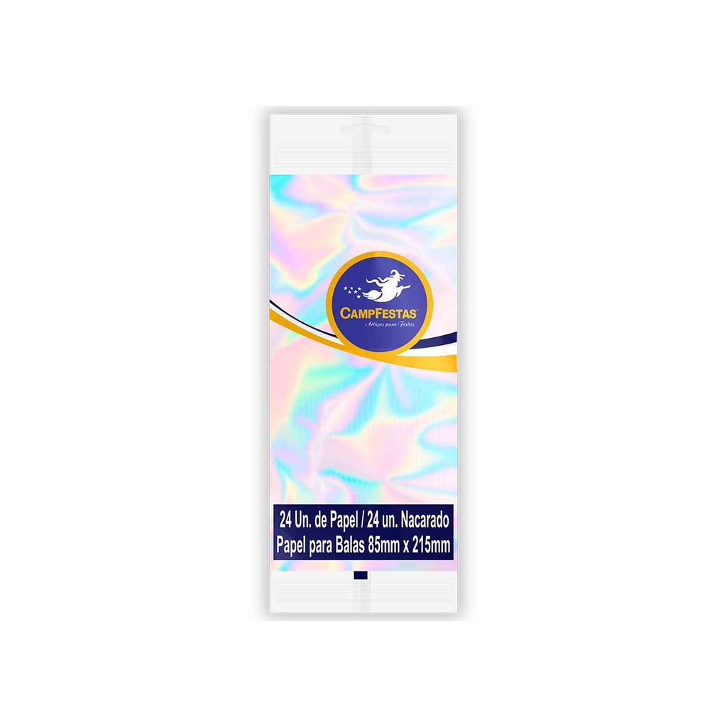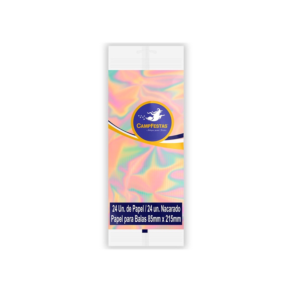 Papel de Bala Nacarado Festas com Franja CampFestas 85x215mm 24 unidades