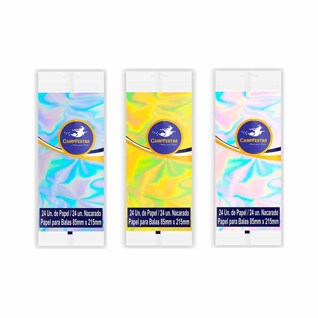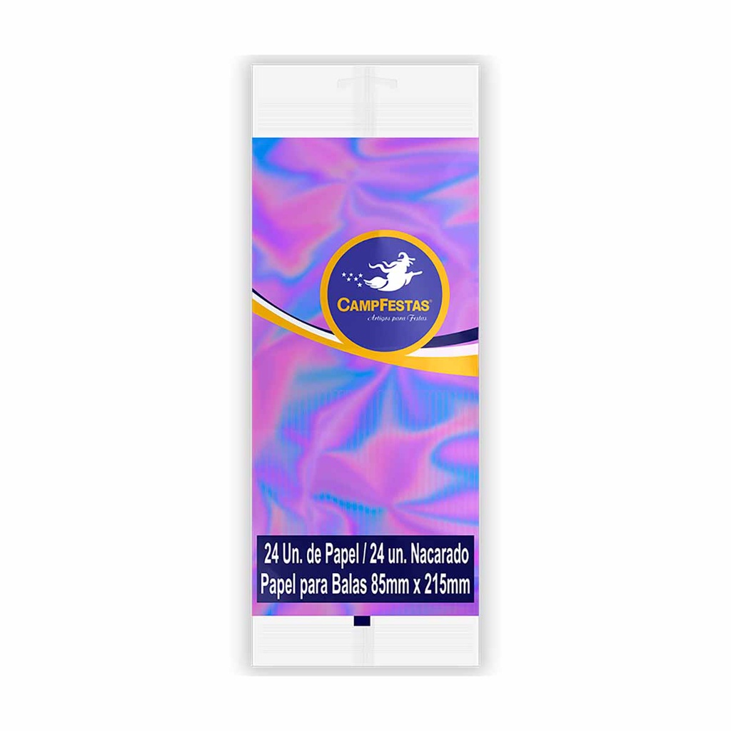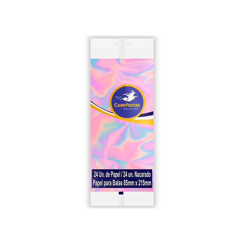 Papel de Bala Nacarado Festas com Franja CampFestas 85x215mm 24 unidades
