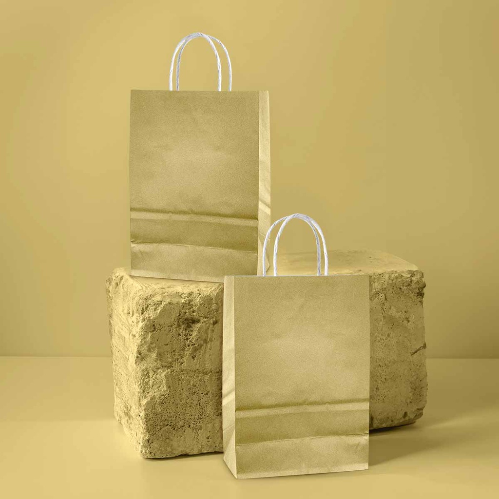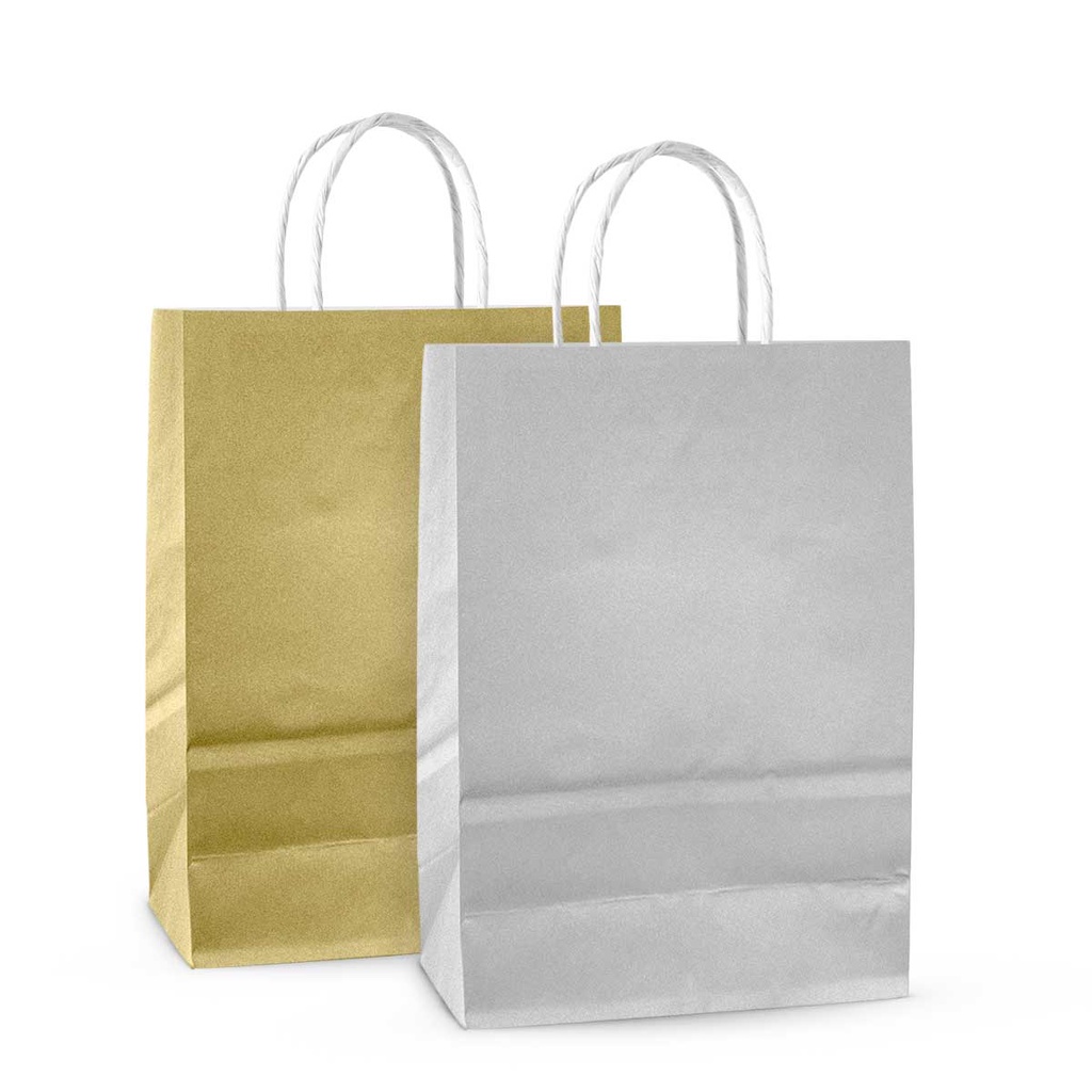 Sacola de Papel Kraft Metalizado PP lembrancinhas presente 15 x 20 x 7cm 10und