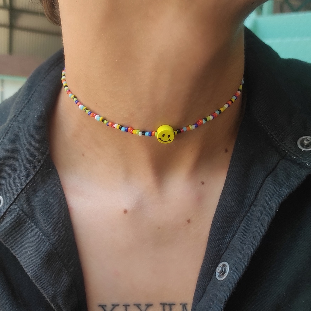 Colar de missangas com smille | Cordão choker Summer smille | Cordão sorriso tiktok | Blackpink lisa choker smille Jennie choker gargantilha sorriso smile colar sorriso