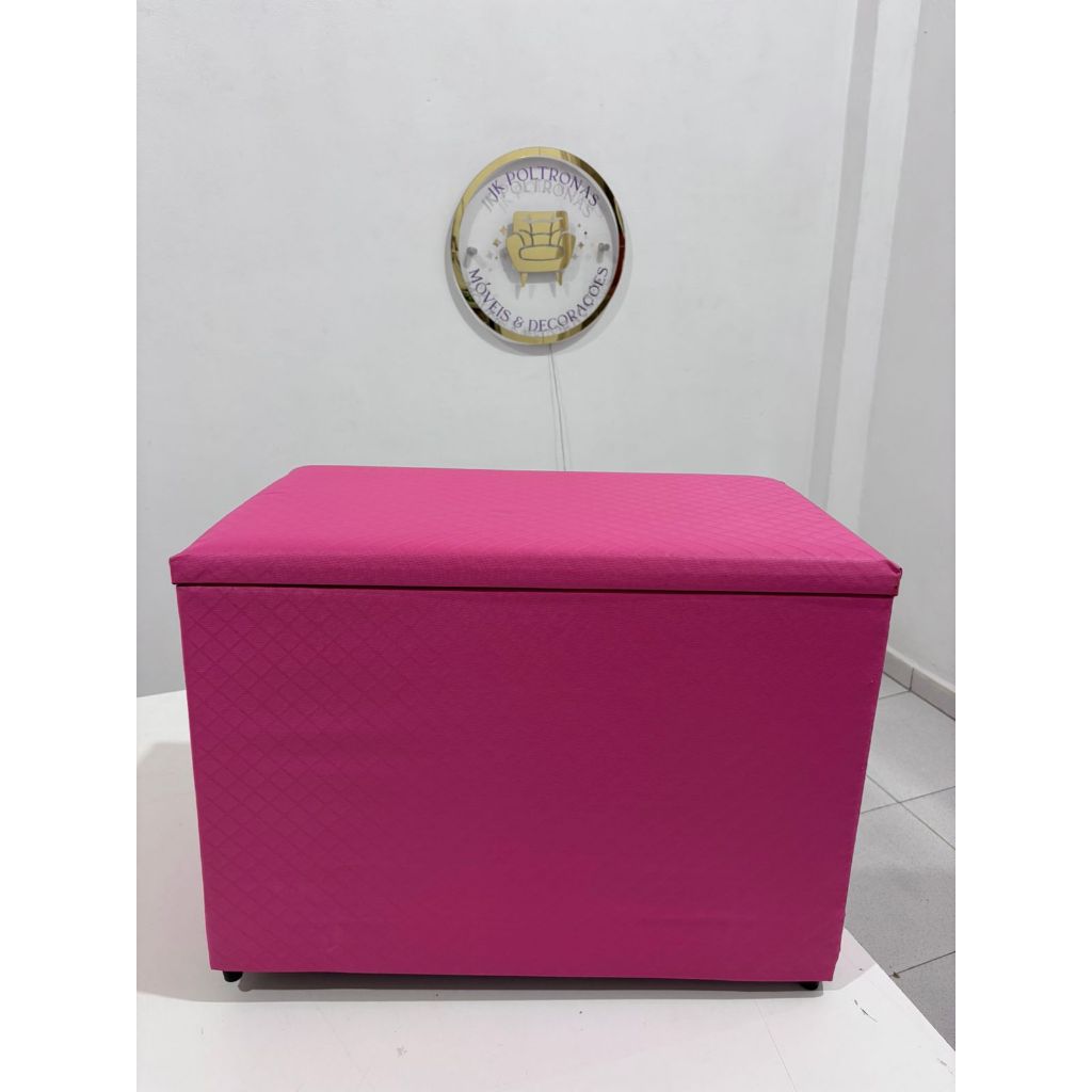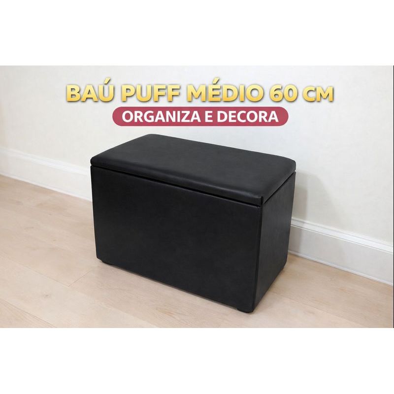 Puff Baú médio 60cm Organizador Reforçado Assento + Armazenamento Ideal Sala e Quarto