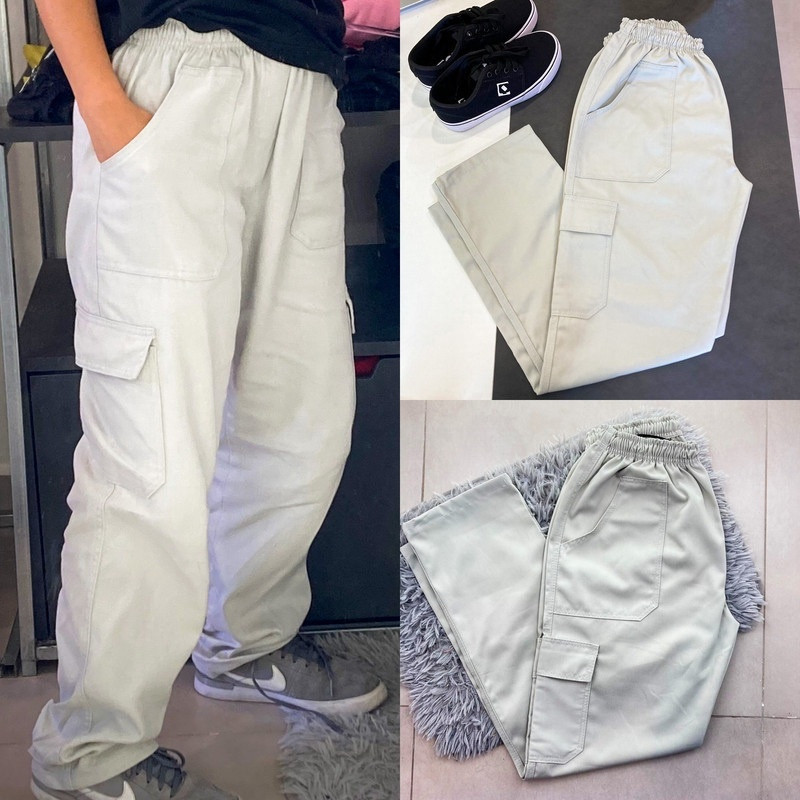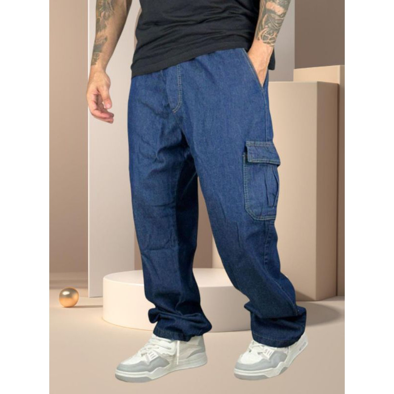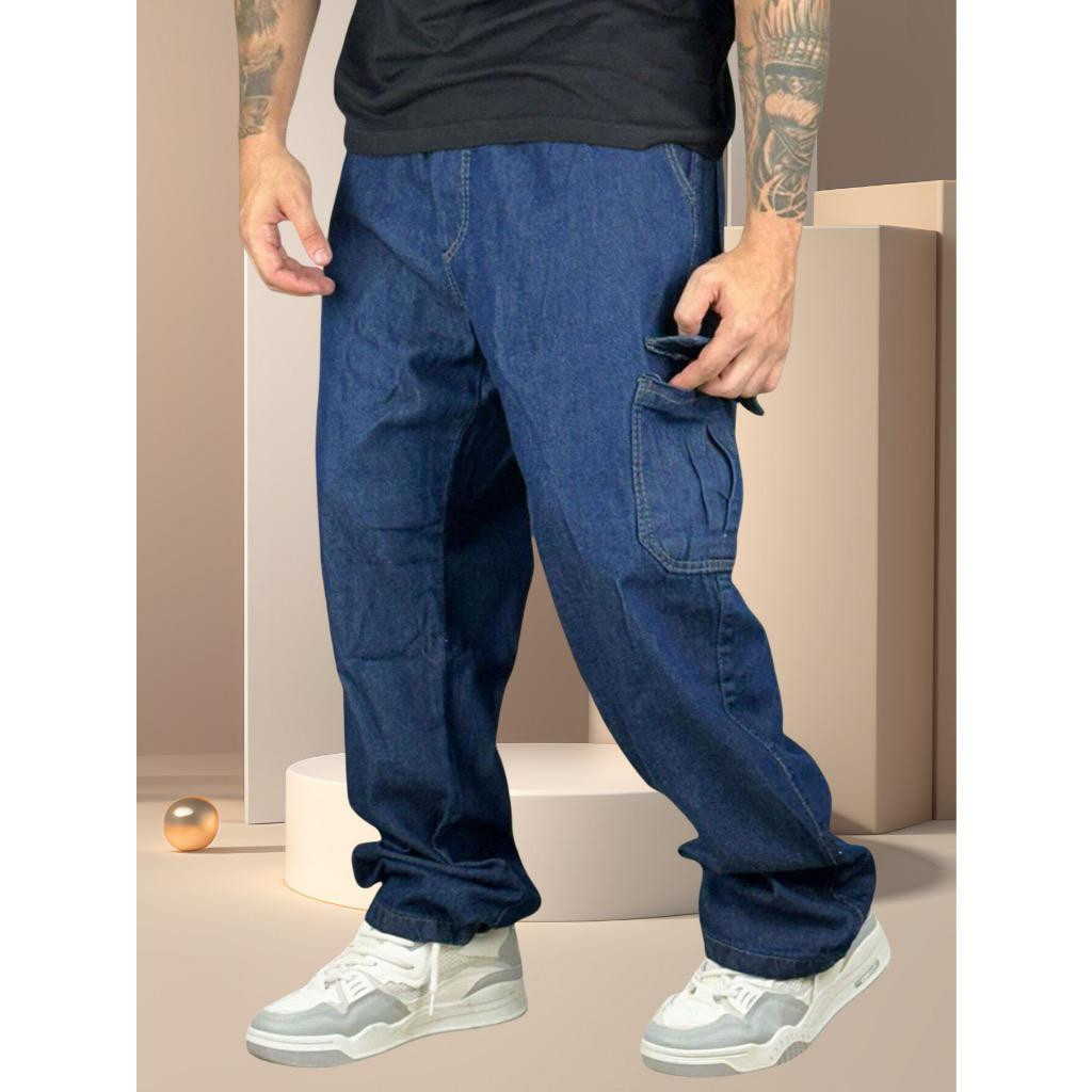 Calça Cargo jeans e sarja Larga e jogger Masculina Skate 6 Bolsos Fechamento Cordão unisex 2025