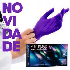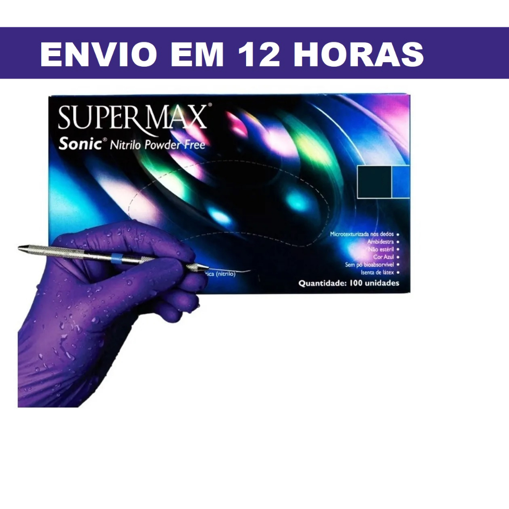 Luva Descartável Nitrílica Azul Cobalto Sonic Sem Pó C/100 Unidades Supermax
