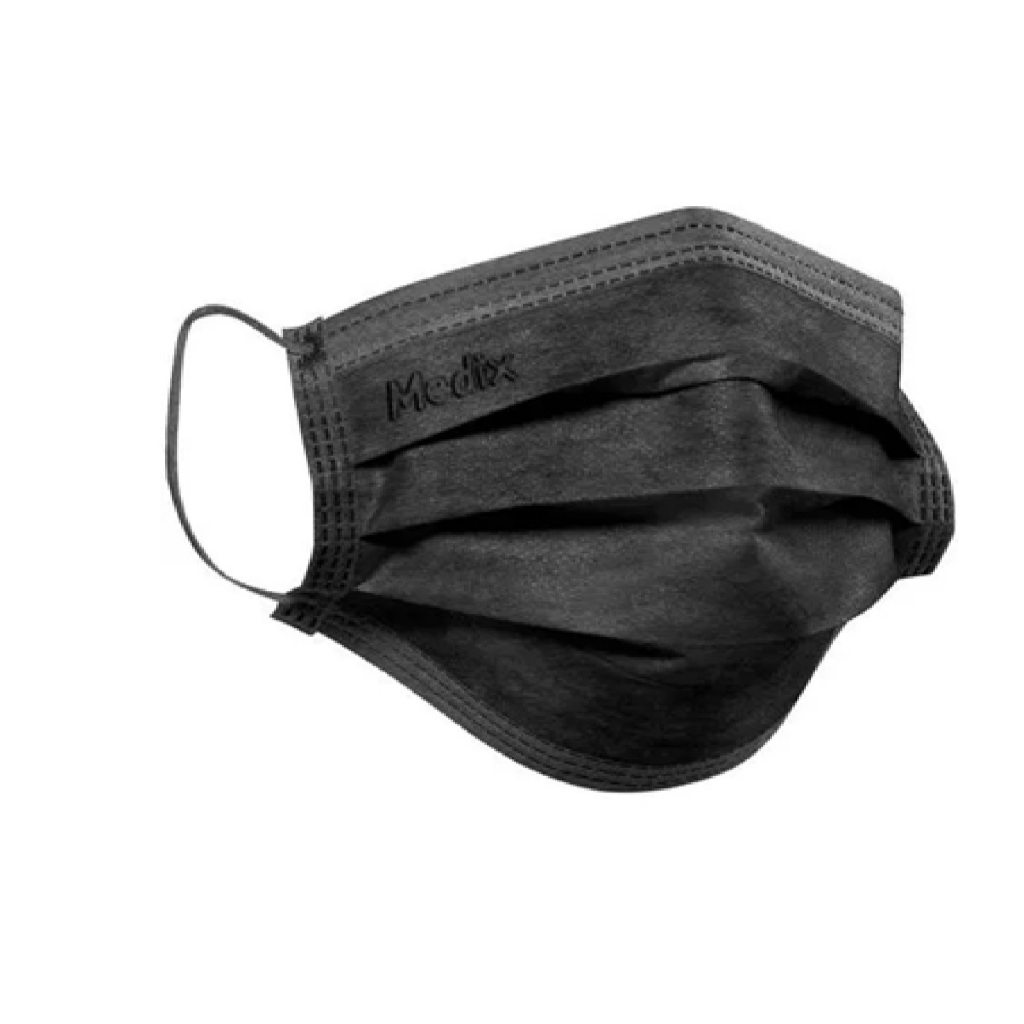 Máscara Descartável Tripla Elástico Rosa e Preta com 50 unidades