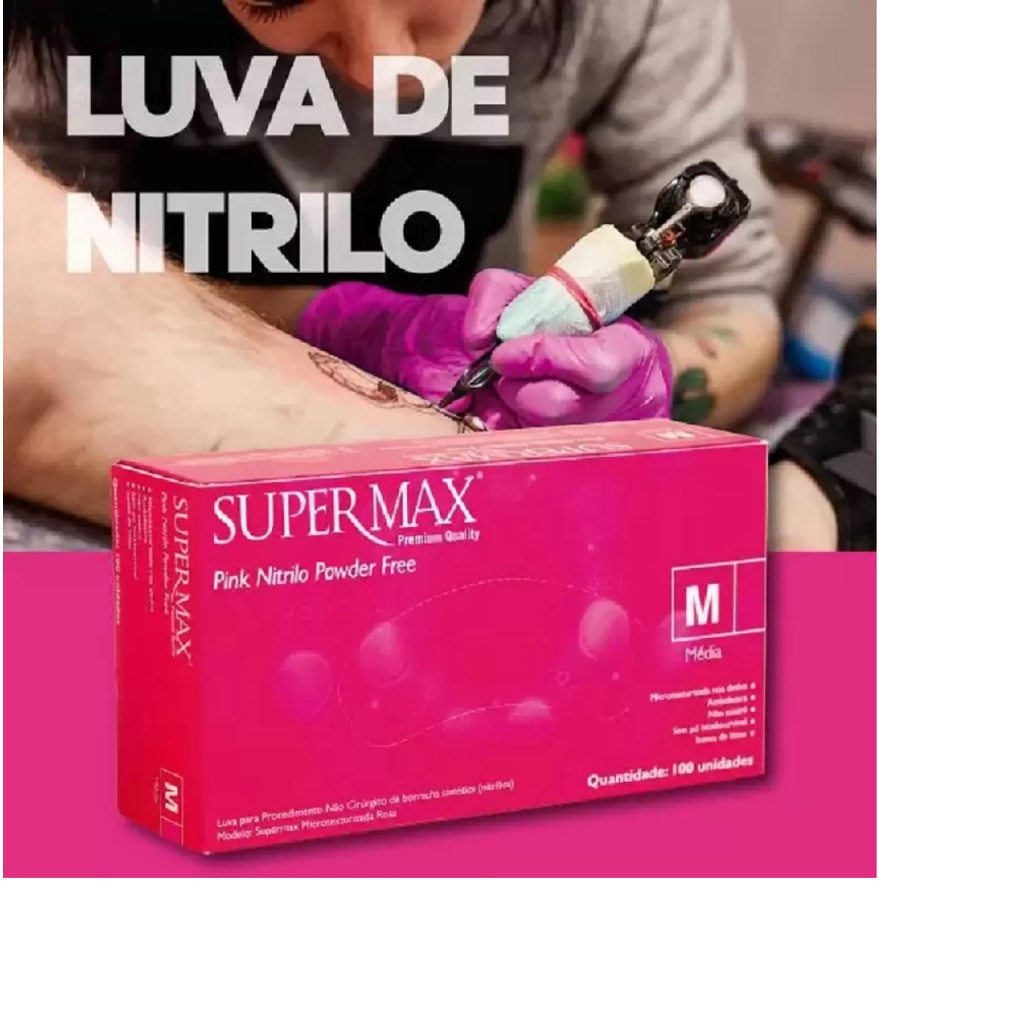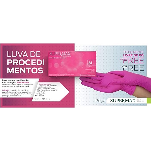 Luva Descartável Nitrílica Rosa Pink C/100 Unidades Supermax