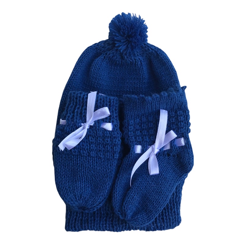 Kit de Bebê com Touca, Luva e Meia Azul Royal