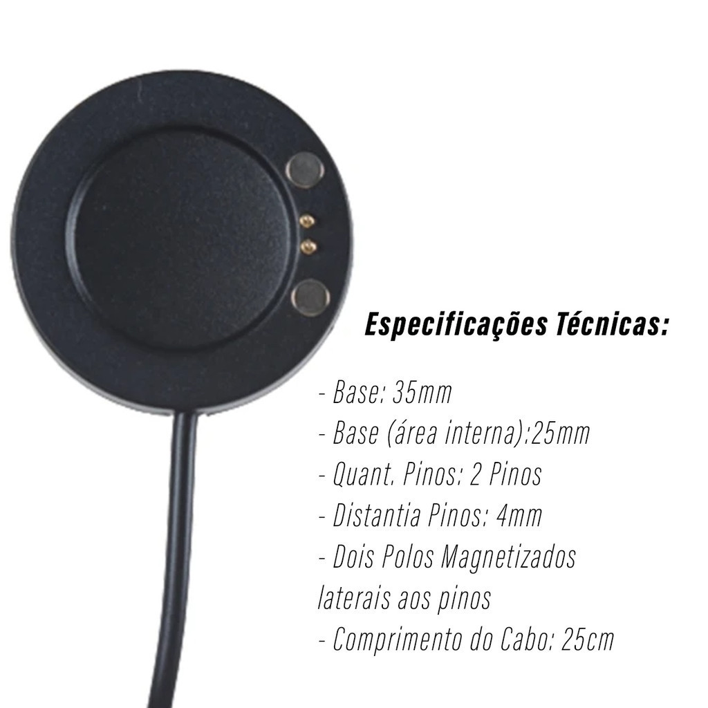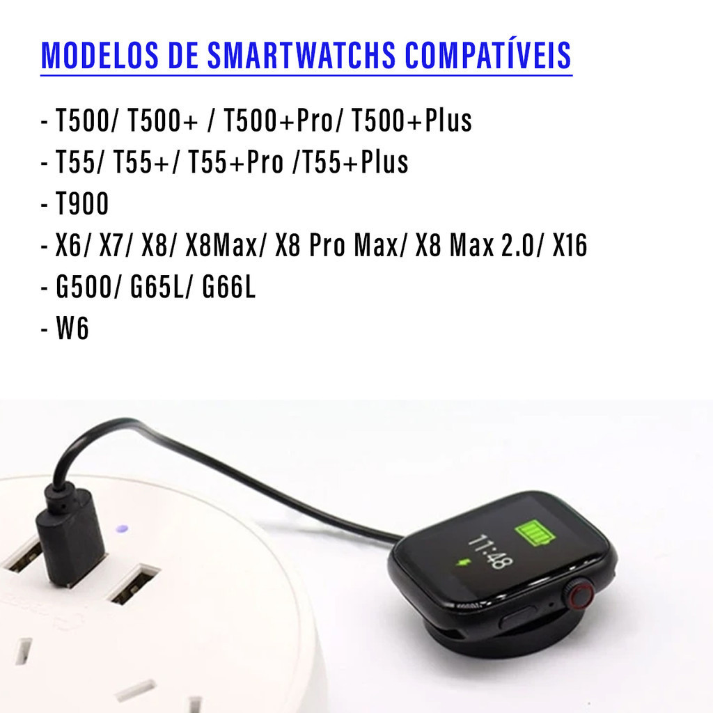 Cabo Carregador Relógio Smartwatch Redondo Magnético Indução X6 X7 X8 X8 Max X16 G500 G65L G66L Q13