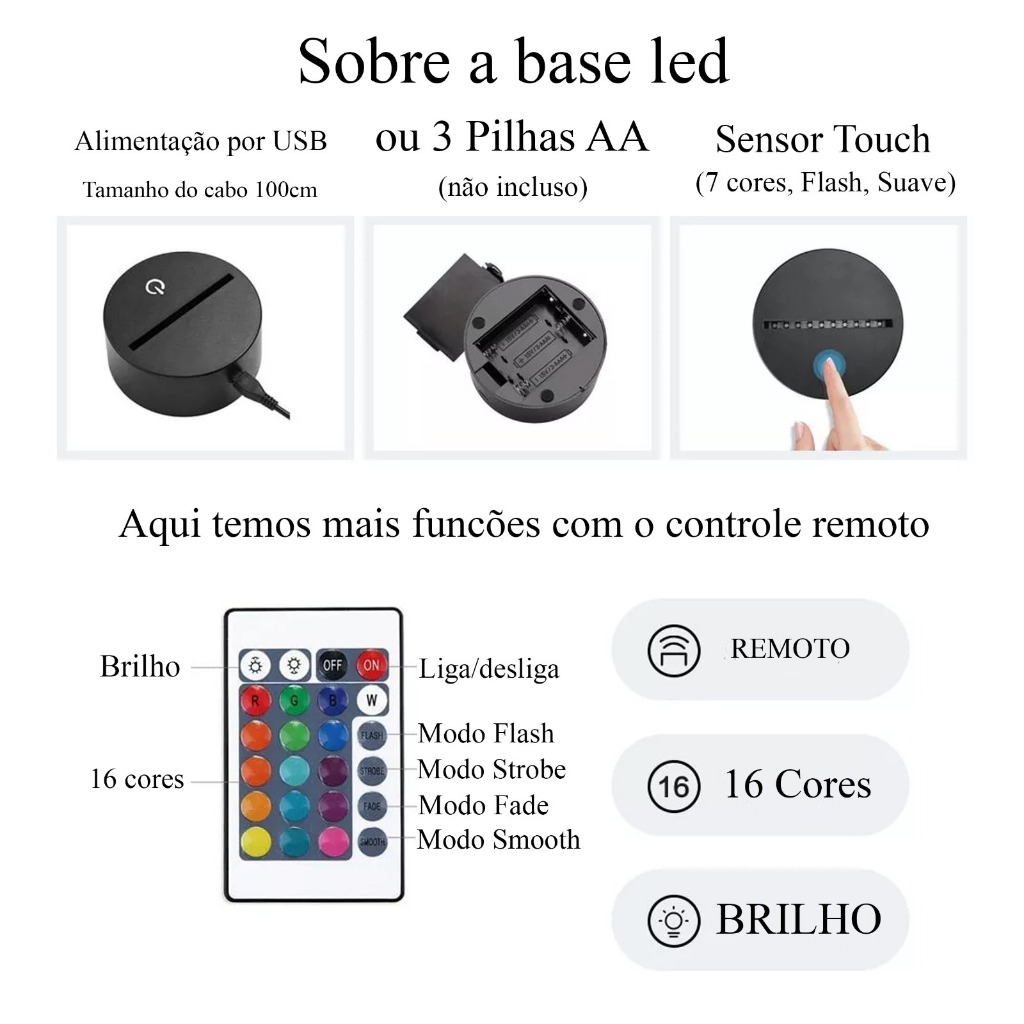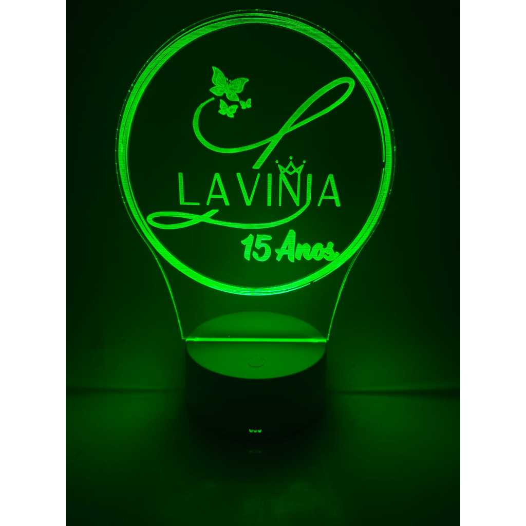 Luminária Led RGB Topo de Bolo meus 15 anos personalizada 16 cores + controle remoto