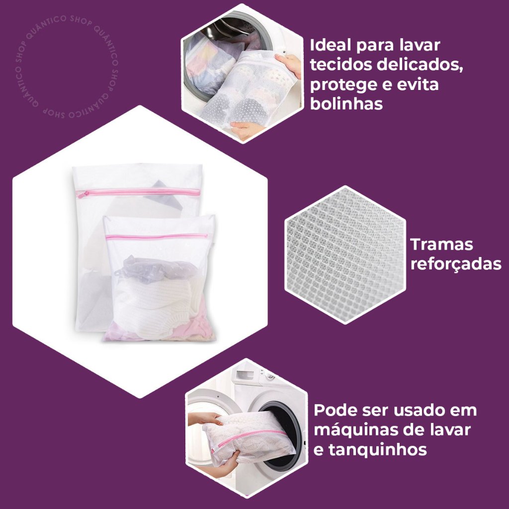Saco para Lavar Roupas na Máquina 2 4 ou 5un - Protetor de Lingerie com Tecido Antibolinhas