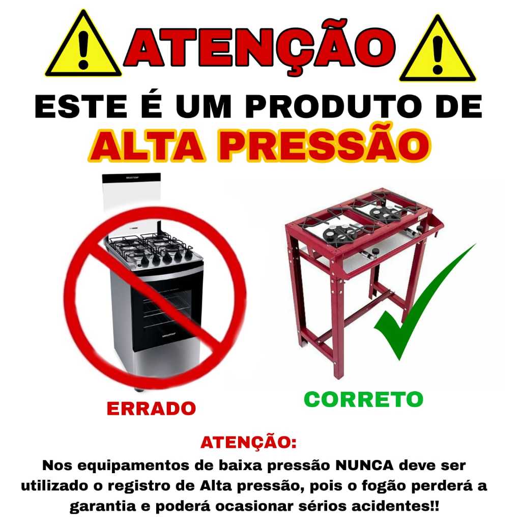 Registro Gás Completo Fogão Alta Pressão C/ Mangueira 1/4