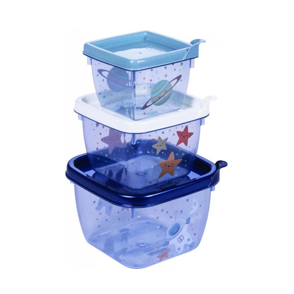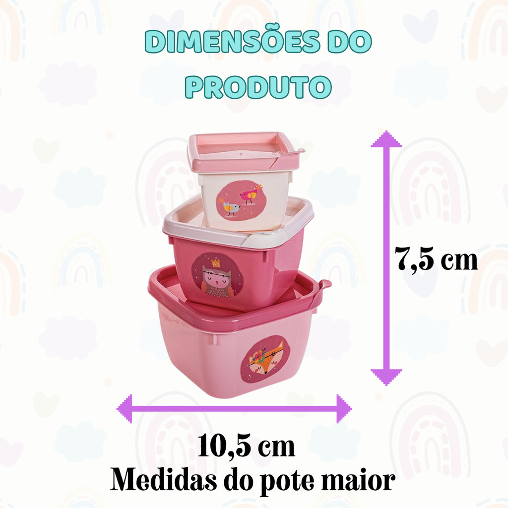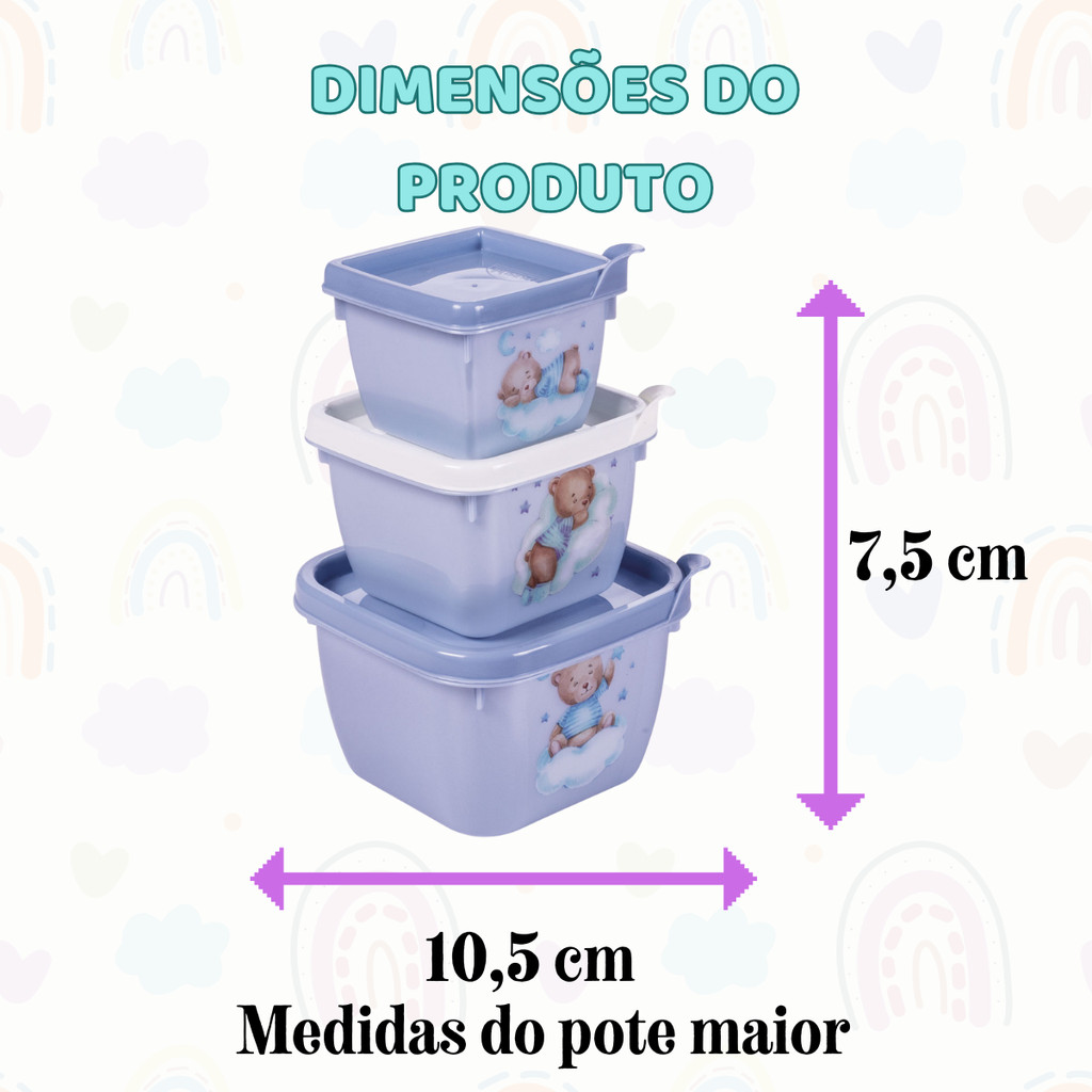 Conjunto de Potes para Alimento Papinha 3 Unidades 140 270 470 ml Encaixáveis Plasutil