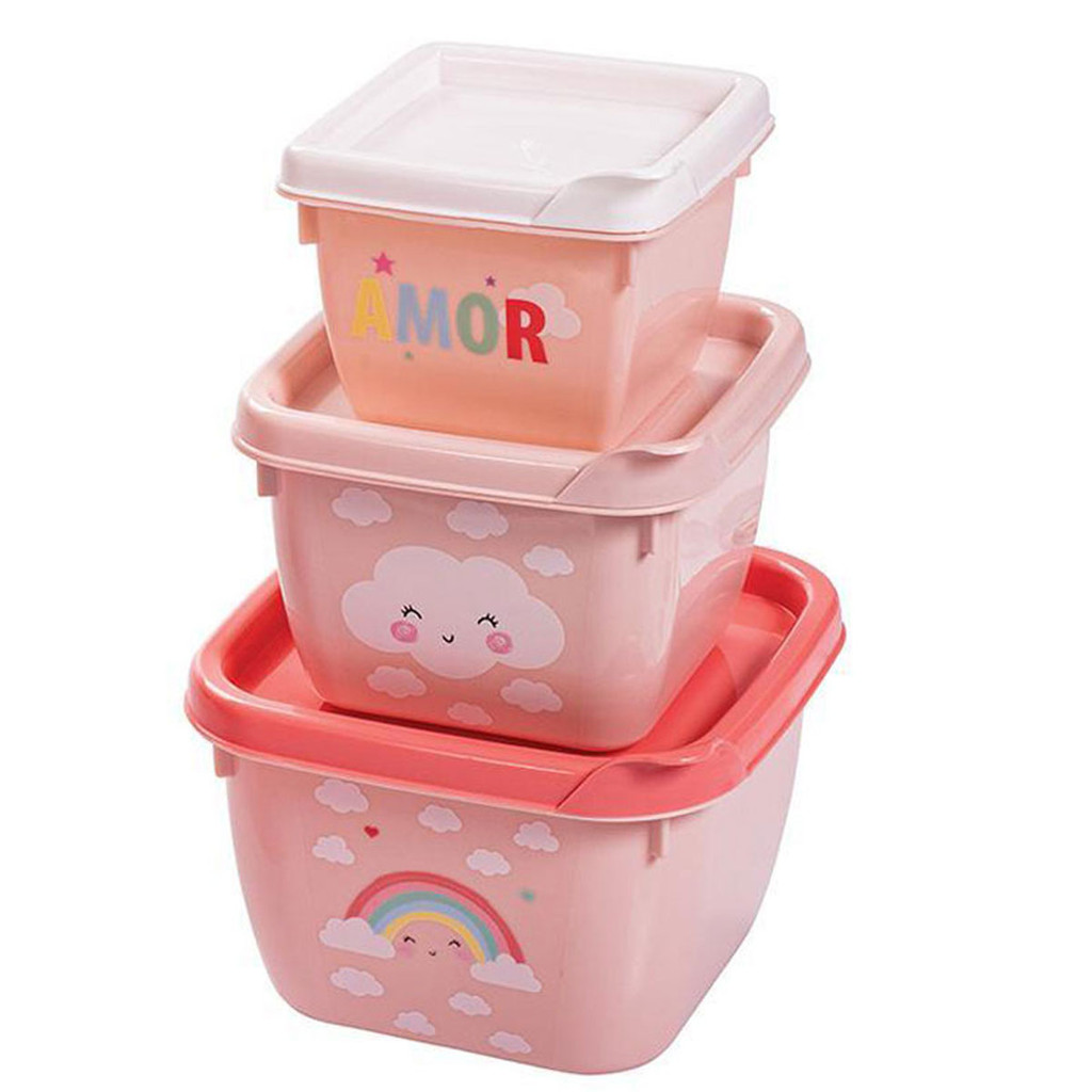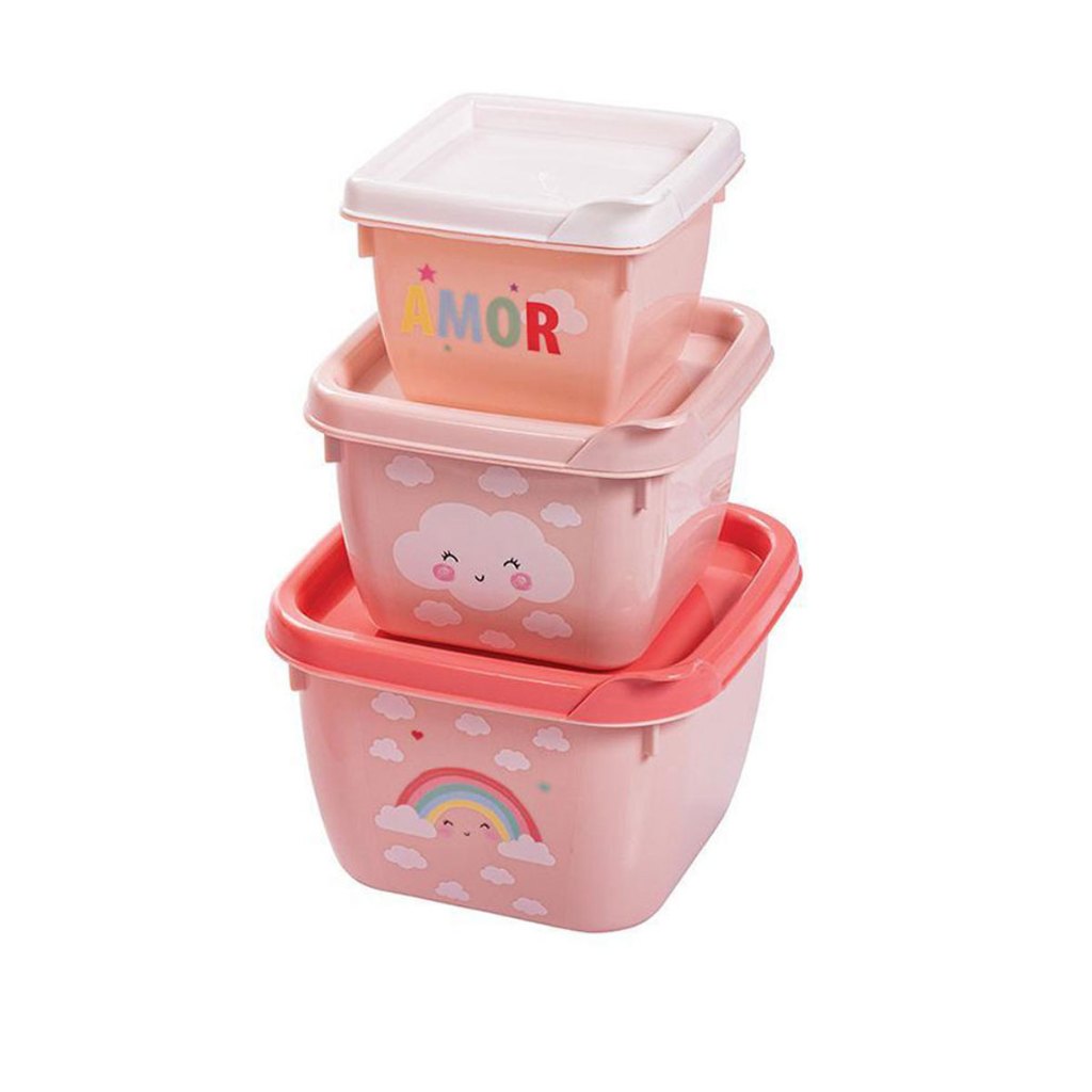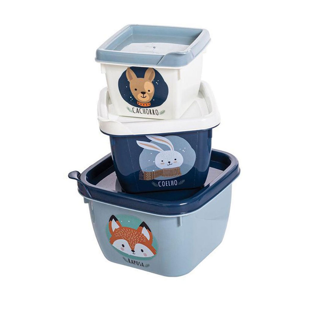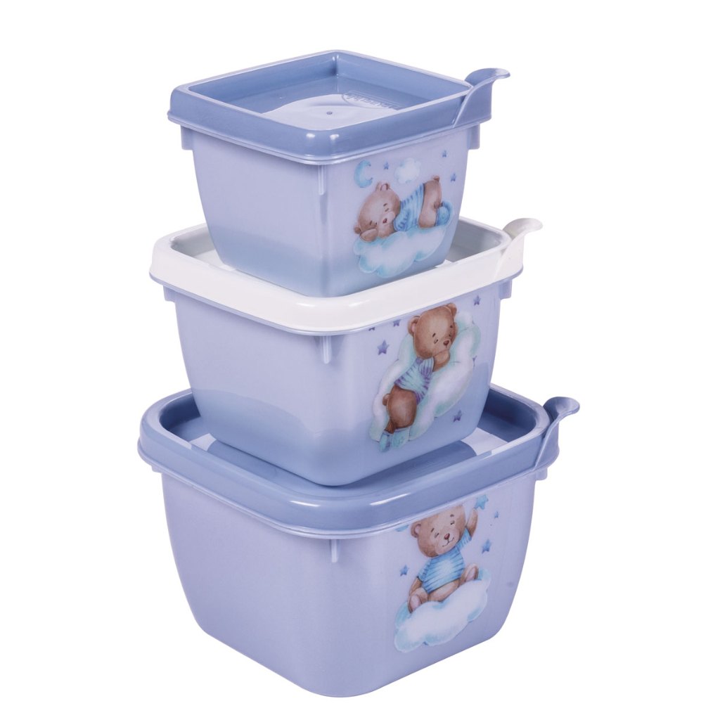 Conjunto de Potes para Alimento Papinha 3 Unidades 140 270 470 ml Encaixáveis Plasutil