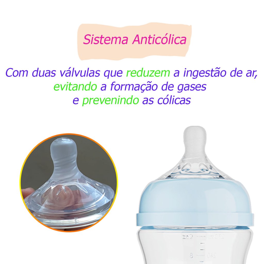 Mamadeira para Bebês 4 meses ou mais com Bico Silicone Design Ergonômico Vedação Segura Buba