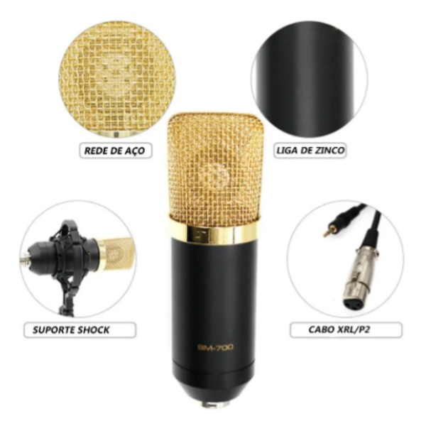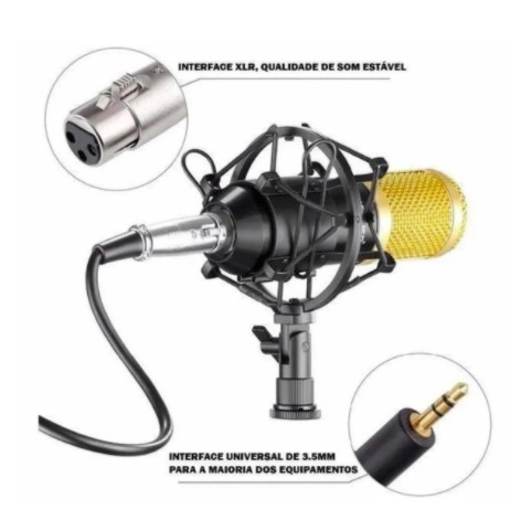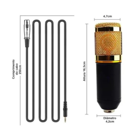 kit Microfone Estúdio Profissional Bm800 Pop Filter + Aranha + Braço Articulado