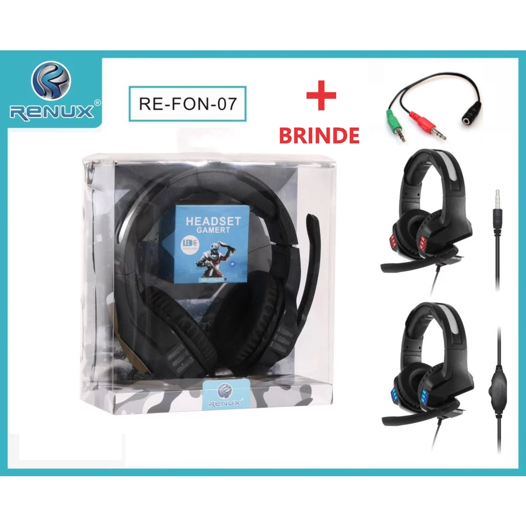 Fone Headset Gamer Original Renux Com Microfone E Adaptador Para Pc Notebook Celular PS4 Xbox