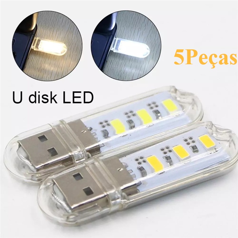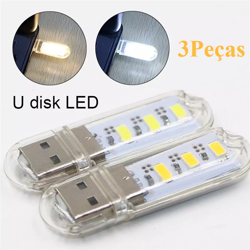 Mini Lâmpada Led Noturna Portátil Usb 3 Led De Leitura De Mesa
