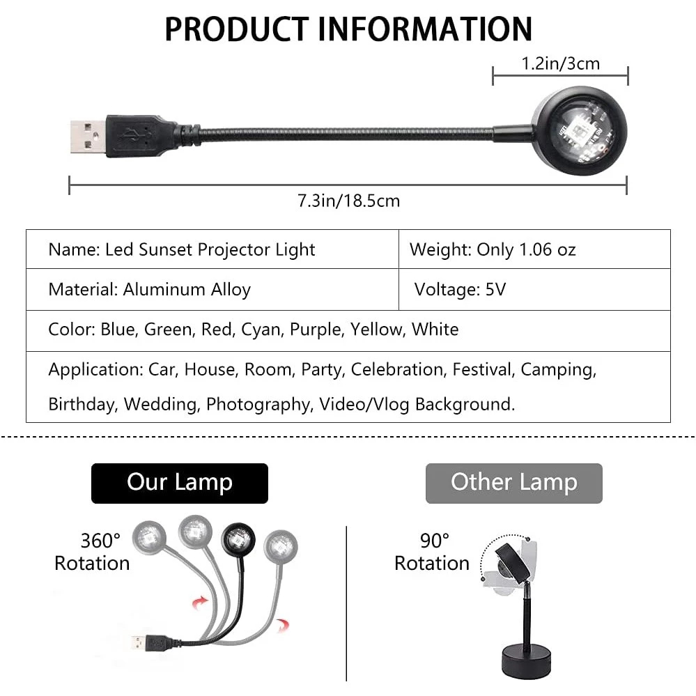 Luminária Por Do Sol Luz Noturna Projetor Led Fundo Decoração Fotografia Sunset Iluminação Light