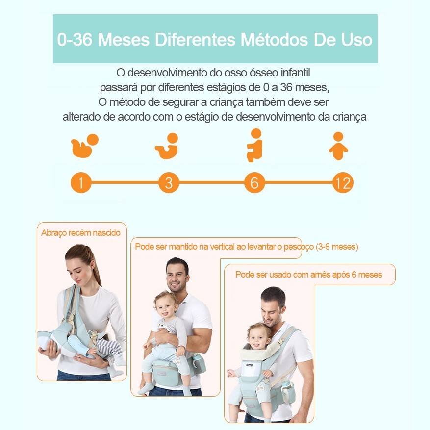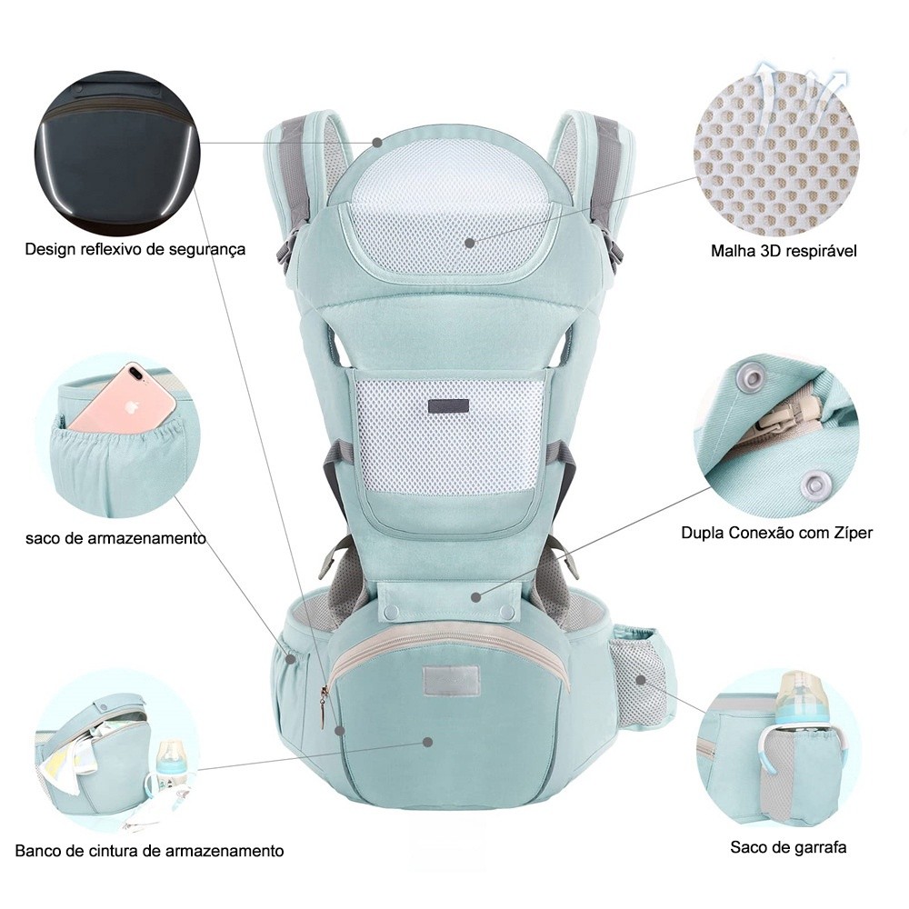 Canguru Carregador de Bebê Ergonômico com Assento HipSeat Até 25kg 36 meses