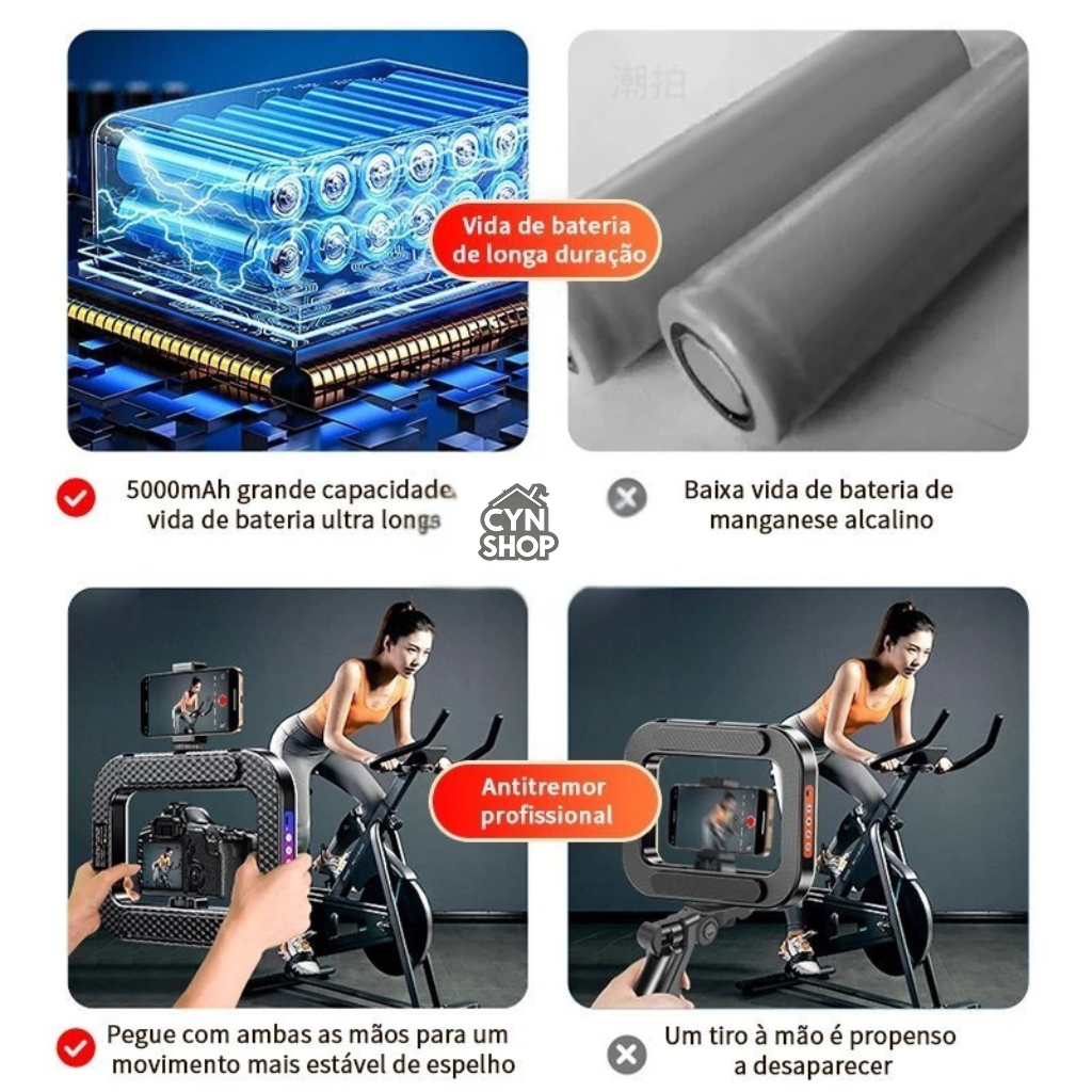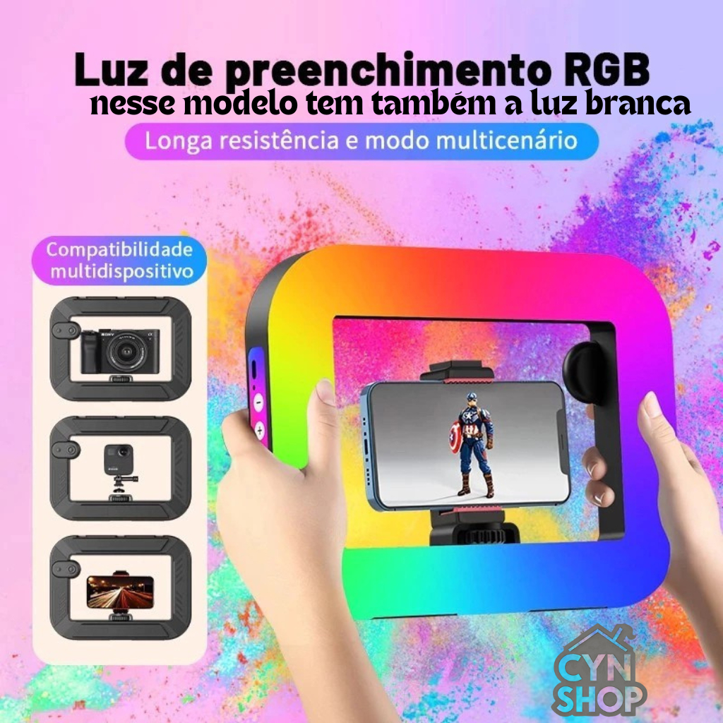 RGB Anel de Luz LED Recarregável 240 LEDs 3 Cores 12 Níveis com Controle Bluetooth