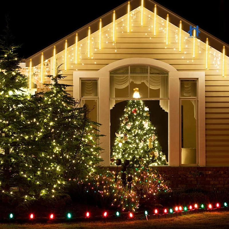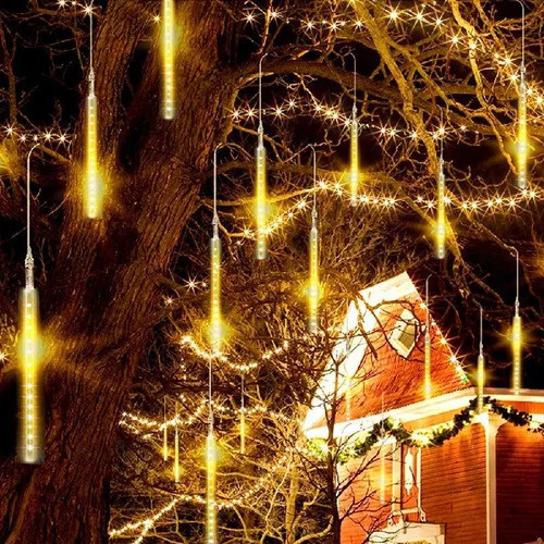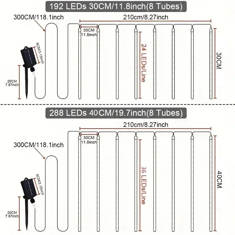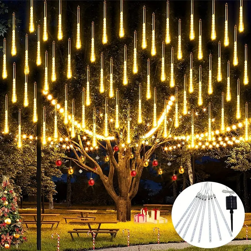 Led Solar 8 Tubos Chuva de Meteoros 288 Led Recarregável No Sol decoração de Natal e Ano novo