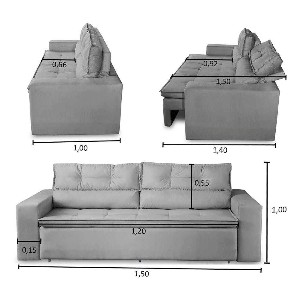 Sofá Retrátil e Reclinável 2 lugares com Molas 1,50m Vegas Suede Adonai Estofados