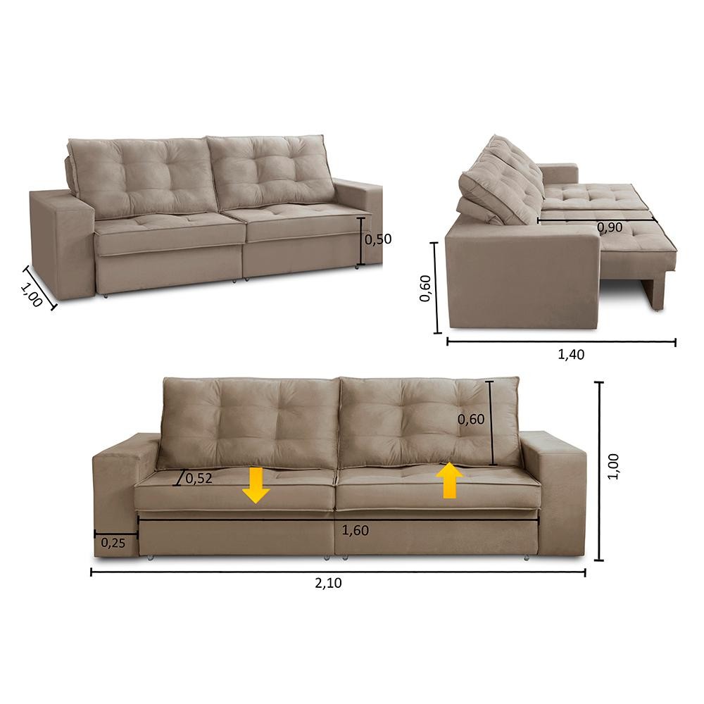 Sofá Retrátil e Reclinável 3 lugares 2,10m com Molas Marcela Suede Adonai Estofados