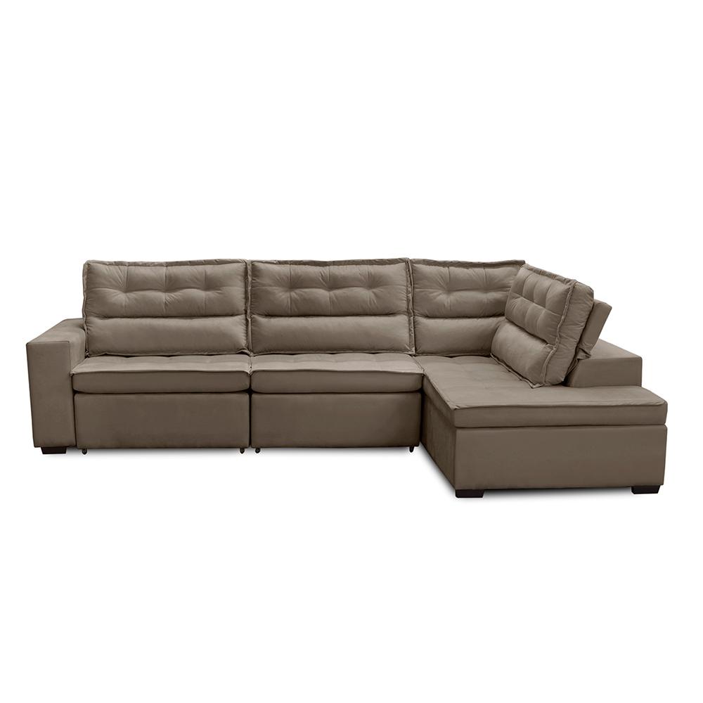 Sofá de Canto Retrátil e Reclinável com Molas 3,00x2,00 Virginia Suede Cappuccino Adonai Estofados
