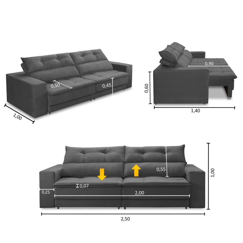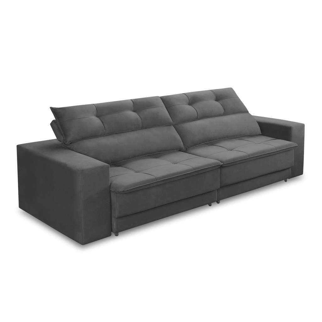 Sofá Retrátil e Reclinável 3 lugares 2,50m com Molas Emily Suede Cinza Adonai Estofados