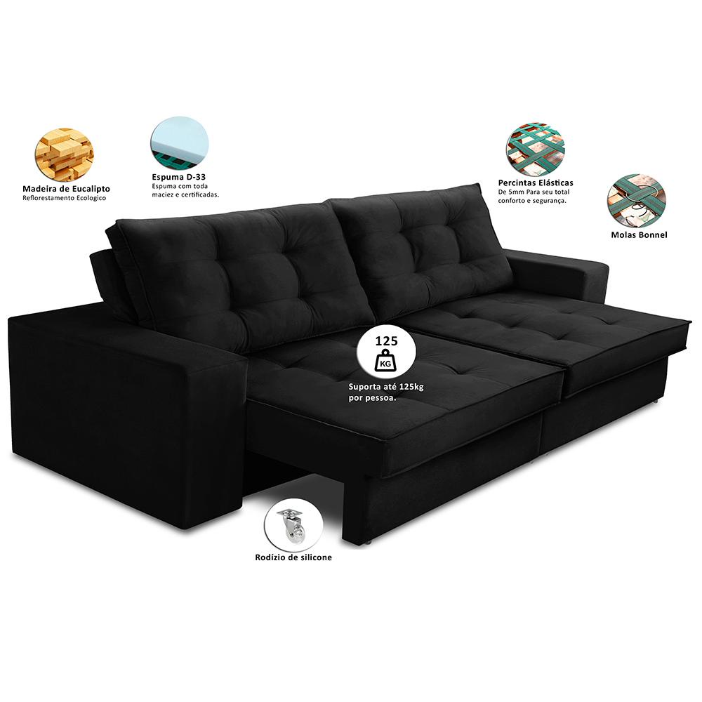 Sofá Retrátil e Reclinável 2 lugares 1,50m com Molas Marcela Suede Preto Adonai Estofados