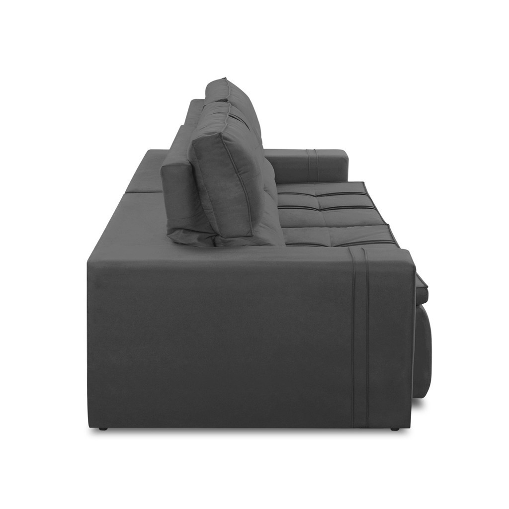 Sofá Retrátil e Reclinável 3 lugares 2,10m com Molas Stella Suede Cinza Adonai Estofados