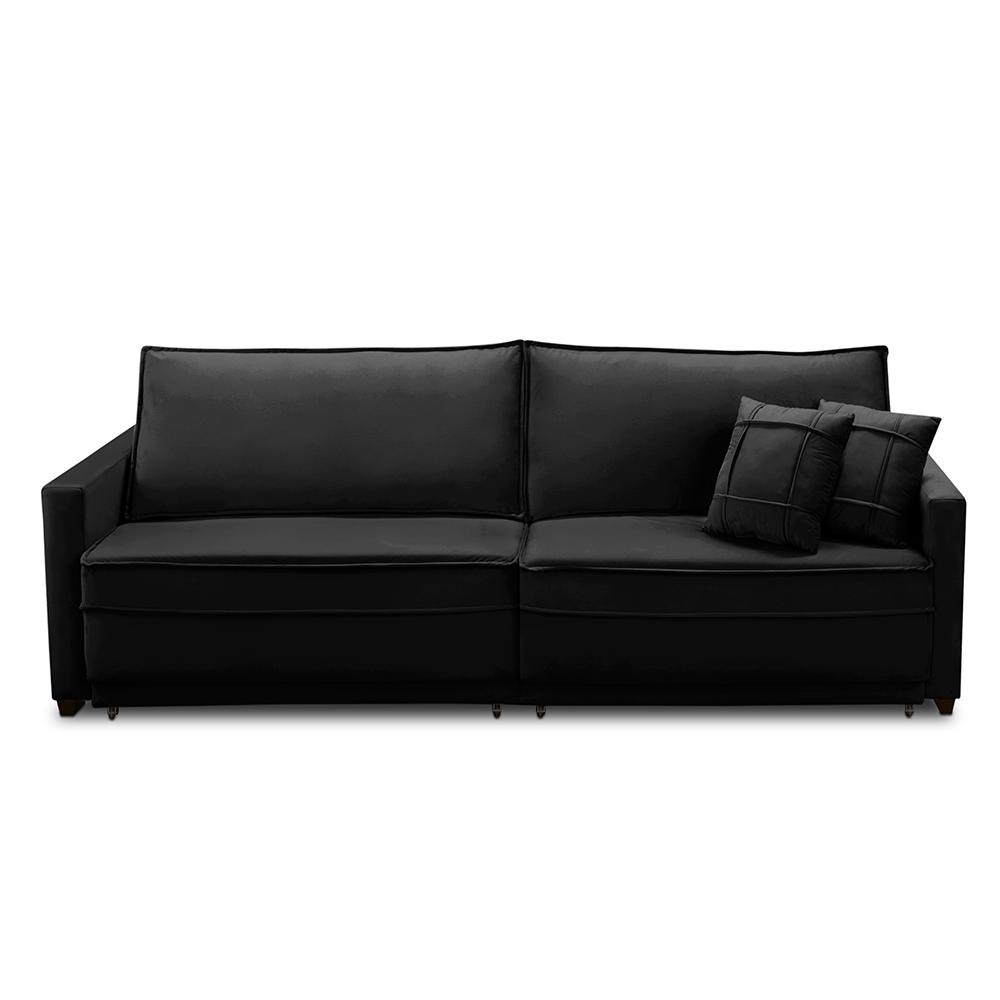 Sofá Sem Caixa Retrátil Reclinável 2,30m Karen Veludo Preto Adonai Estofados