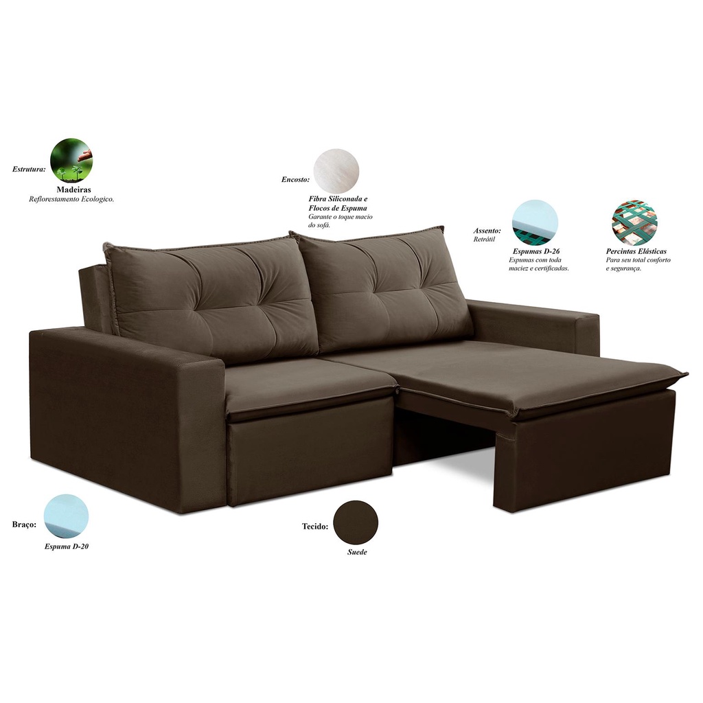 Sofá Retrátil 2 Lugares 1,80m Luna Suede Marrom Adonai Estofados