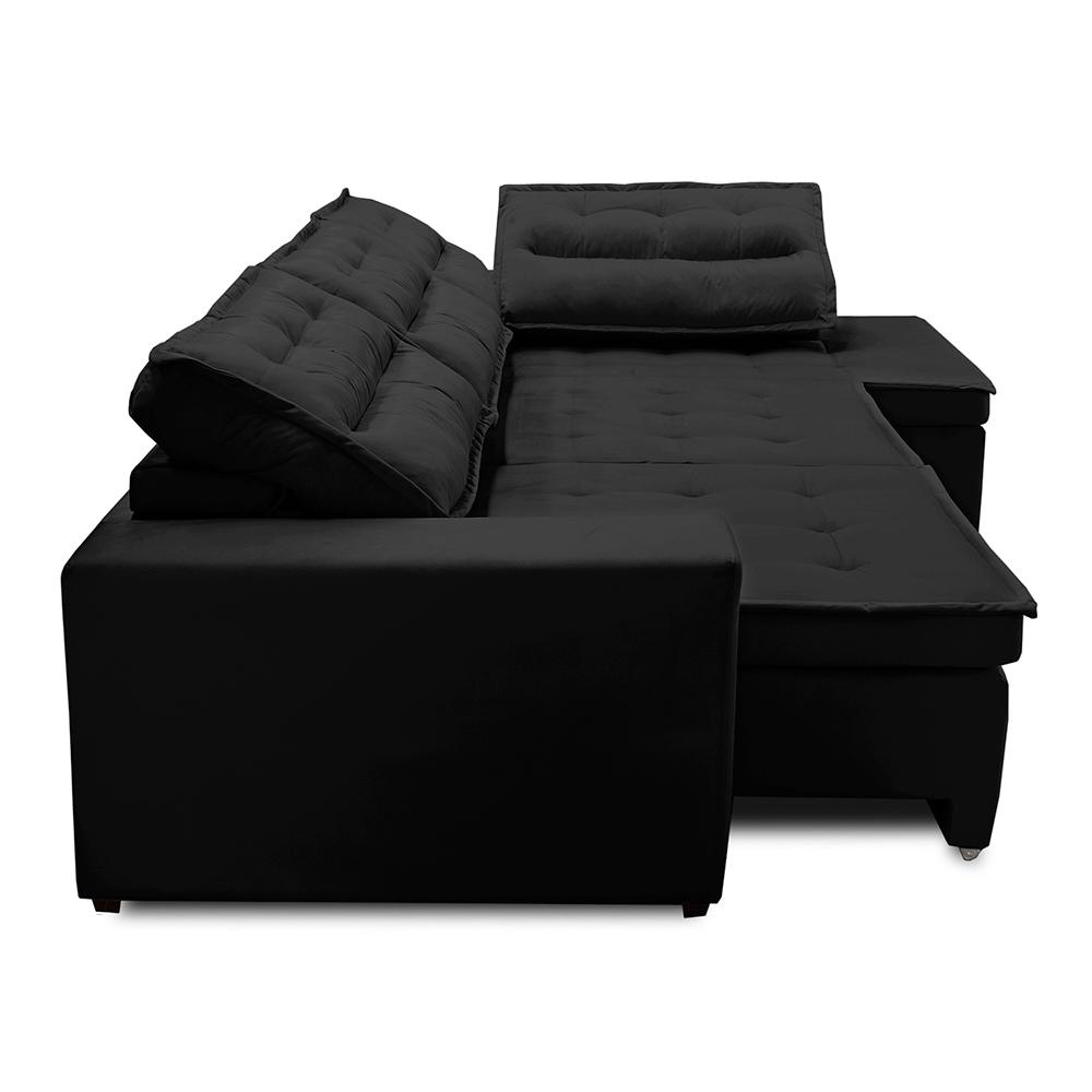 Sofá de Canto Retrátil e Reclinável com Molas 3,00x2,00 Virginia Suede Preto Adonai Estofados