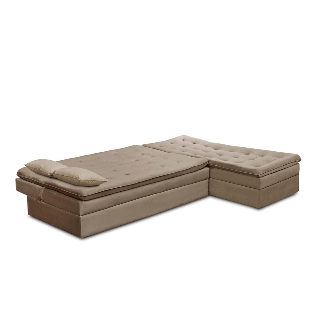 Sofá Cama King 5 Lugares 2,70m Alice Suede Cappuccino Adonai Estofados