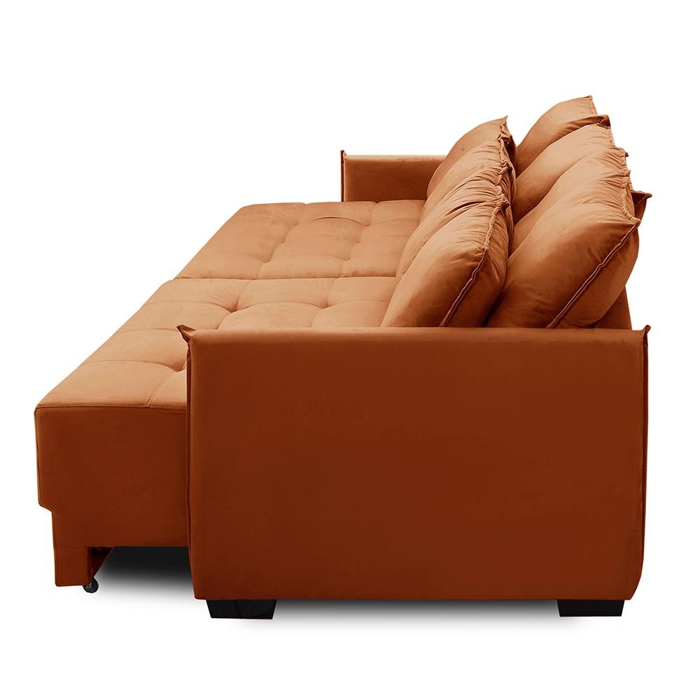 Sofá Cama Retrátil e Reclinável 2,30m com Molas Carol Veludo Adonai Estofados